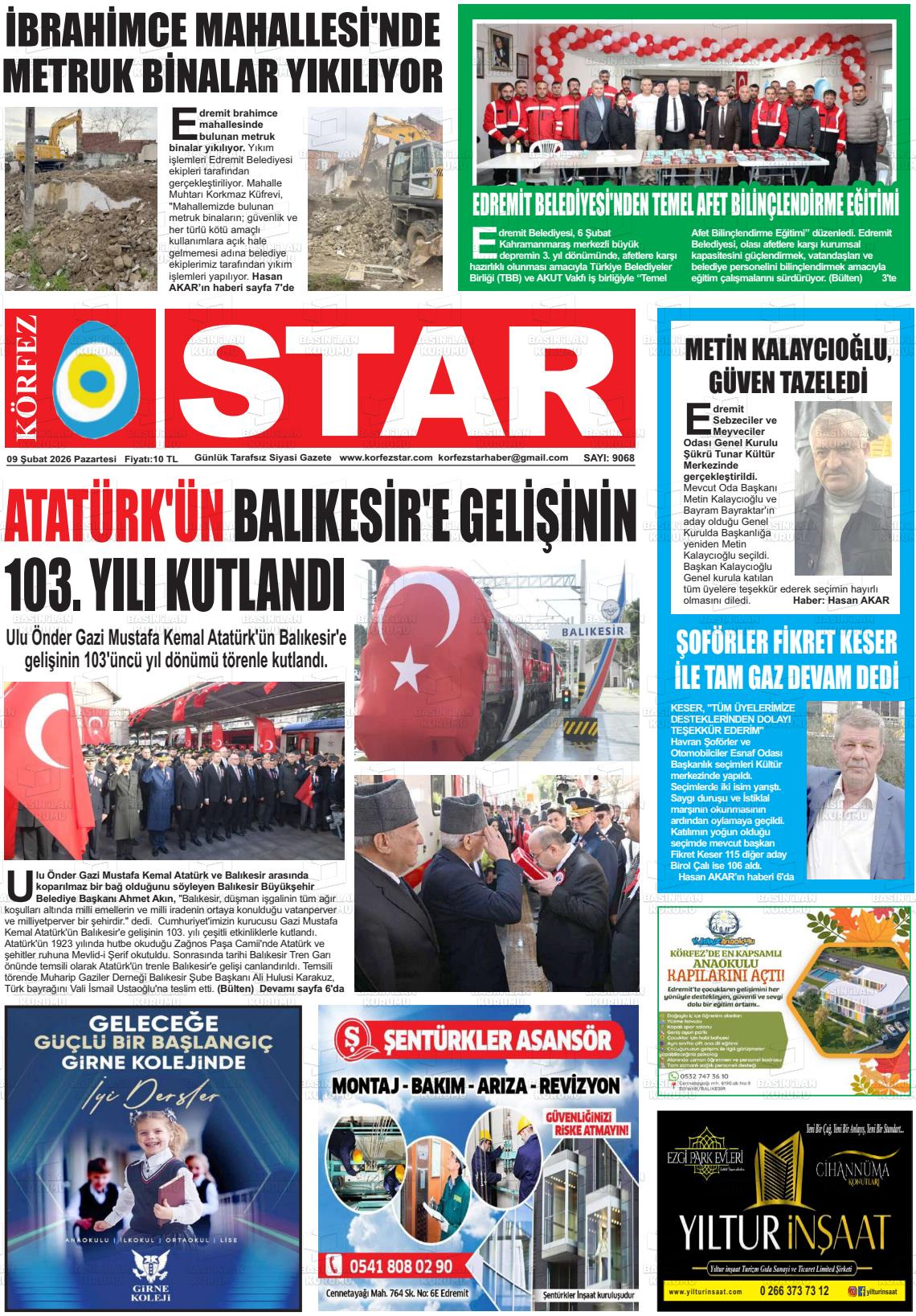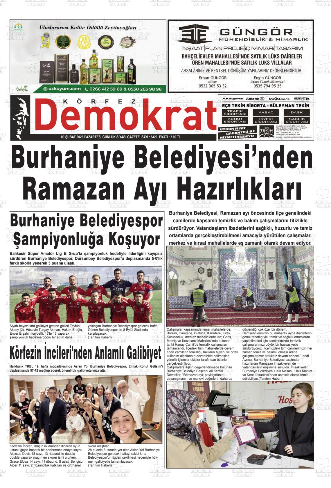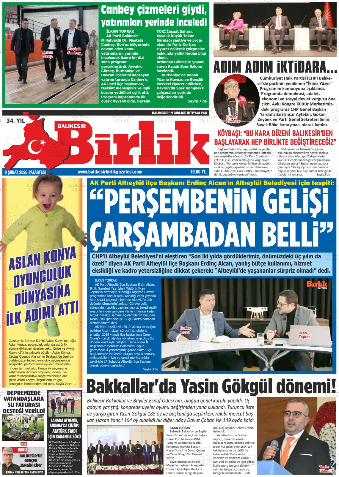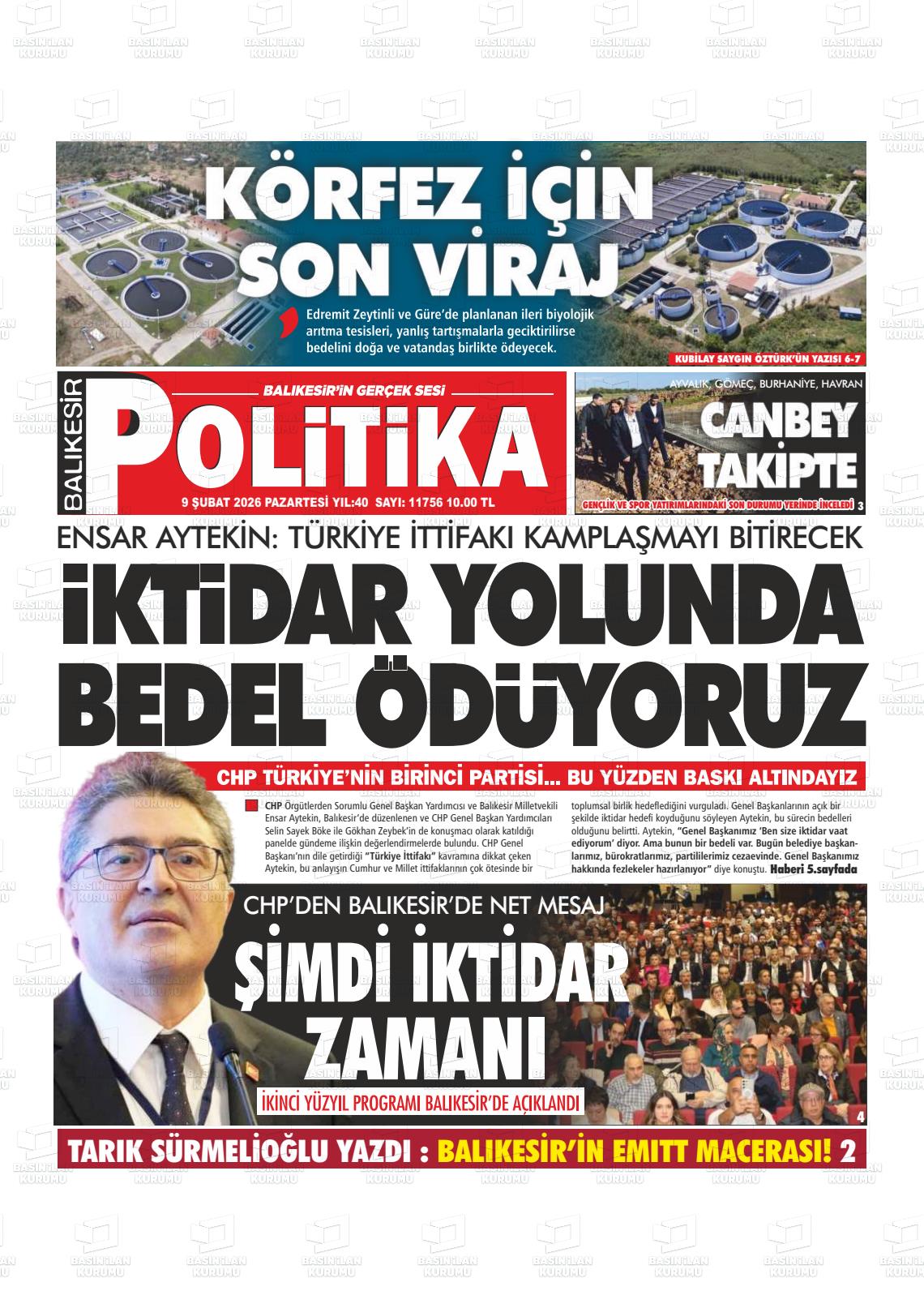 Balıkesİr Yerel Gazeteleri 09 Şubat 2026, Pazartesi Günü Manşeti
