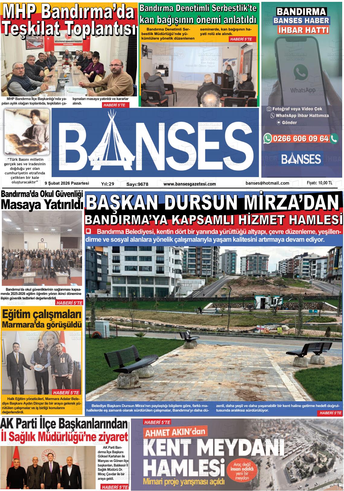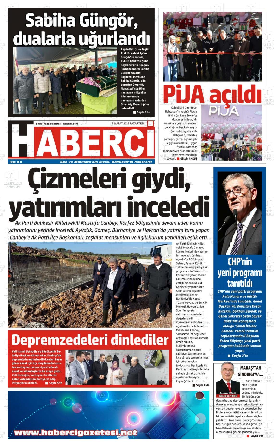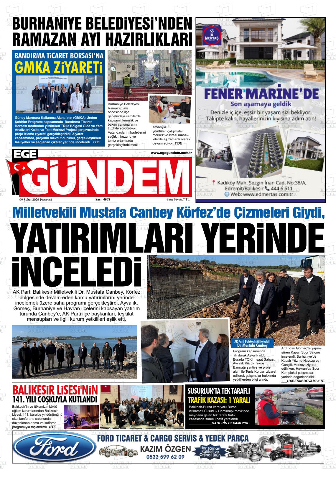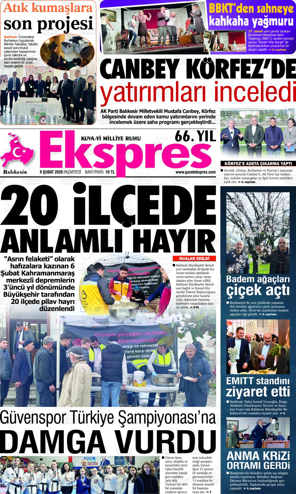 Balıkesİr Yerel Gazeteleri 09 Şubat 2026, Pazartesi Günü Manşeti
