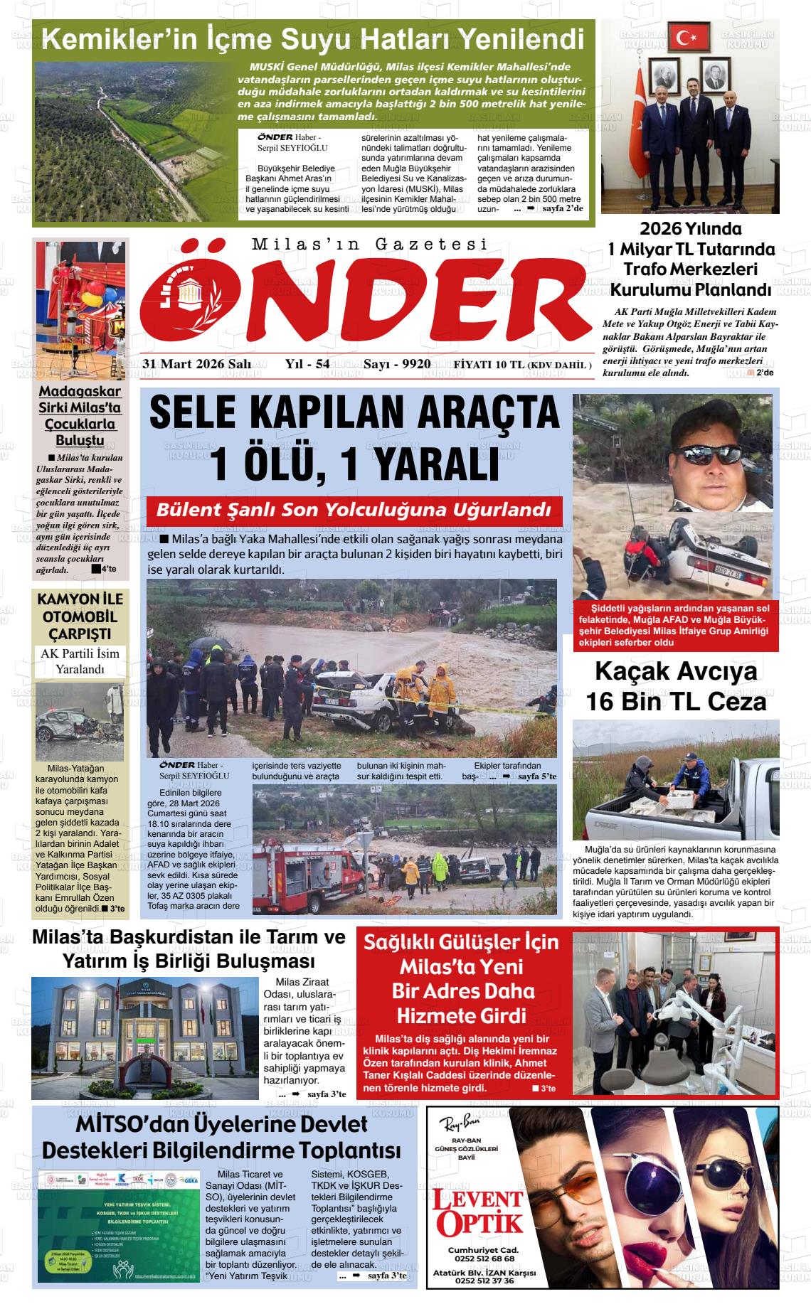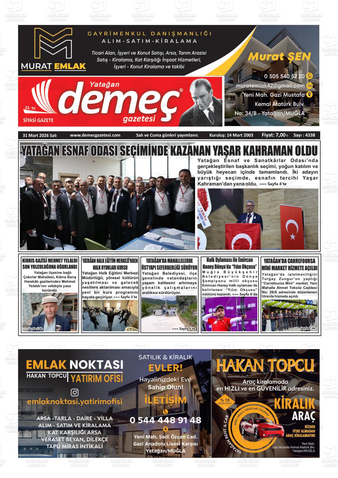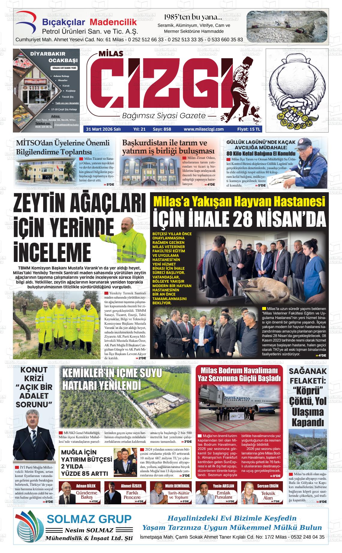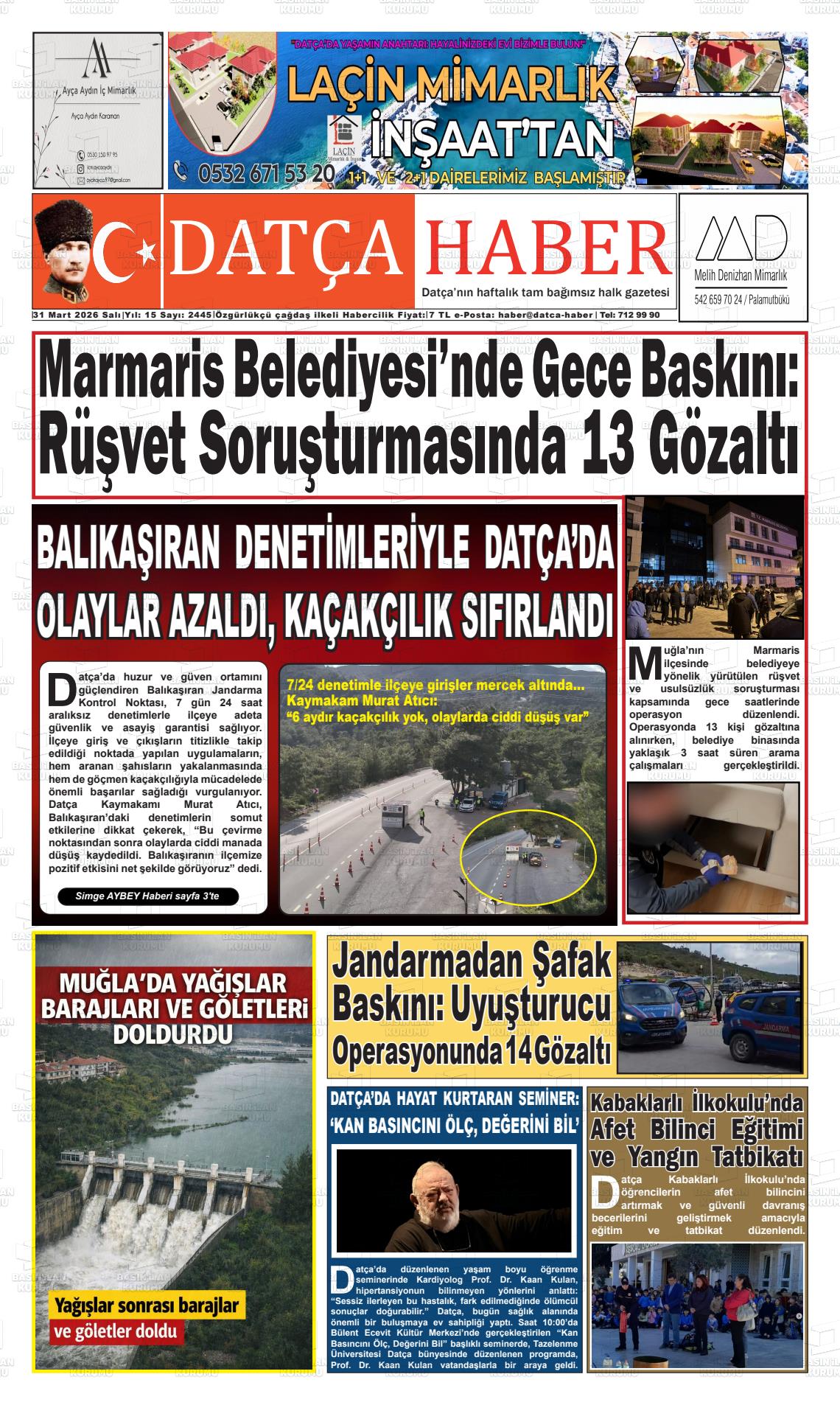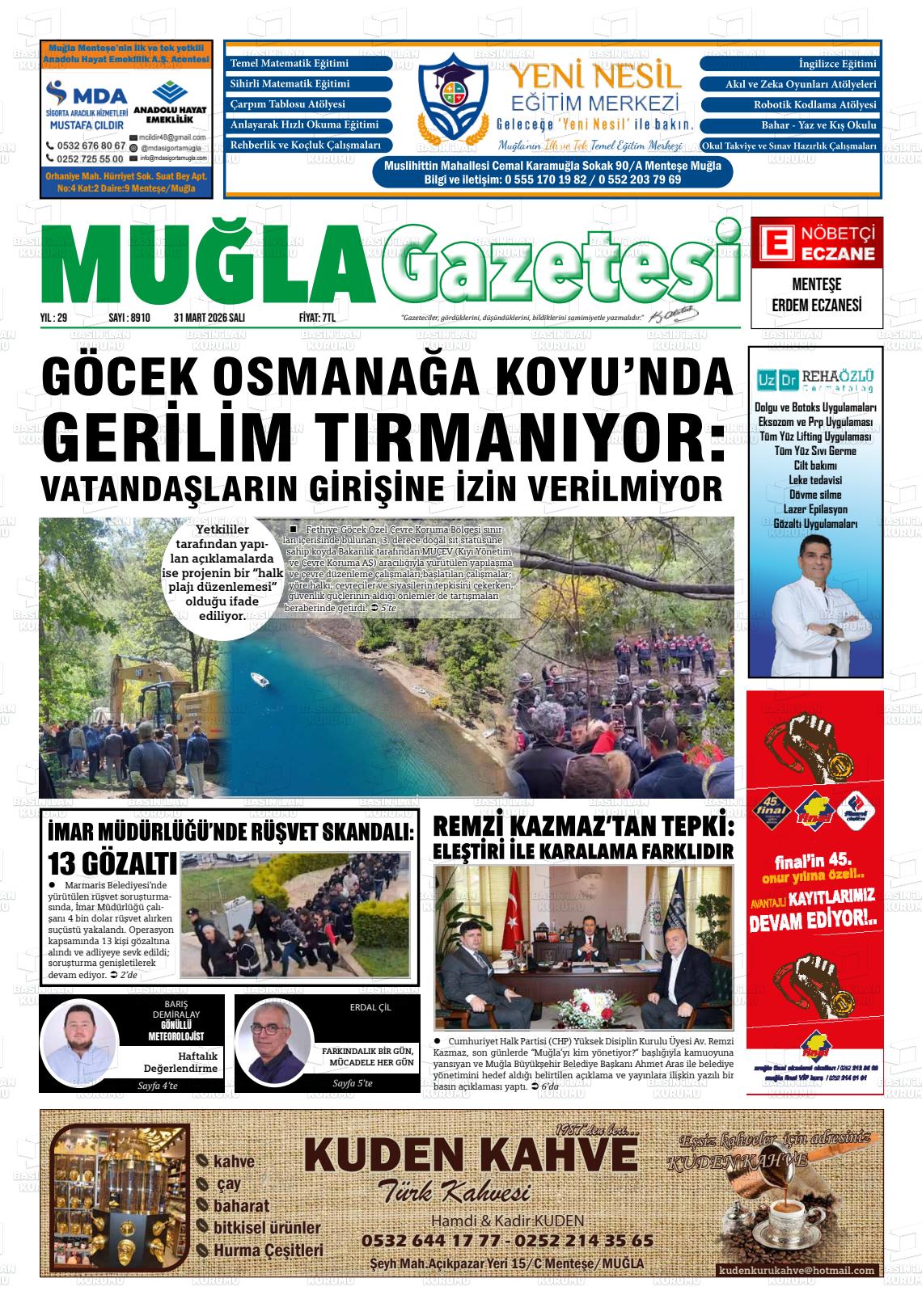 Muğla Yerel Gazeteleri 31 Mart 2026, Salı Günü Manşeti