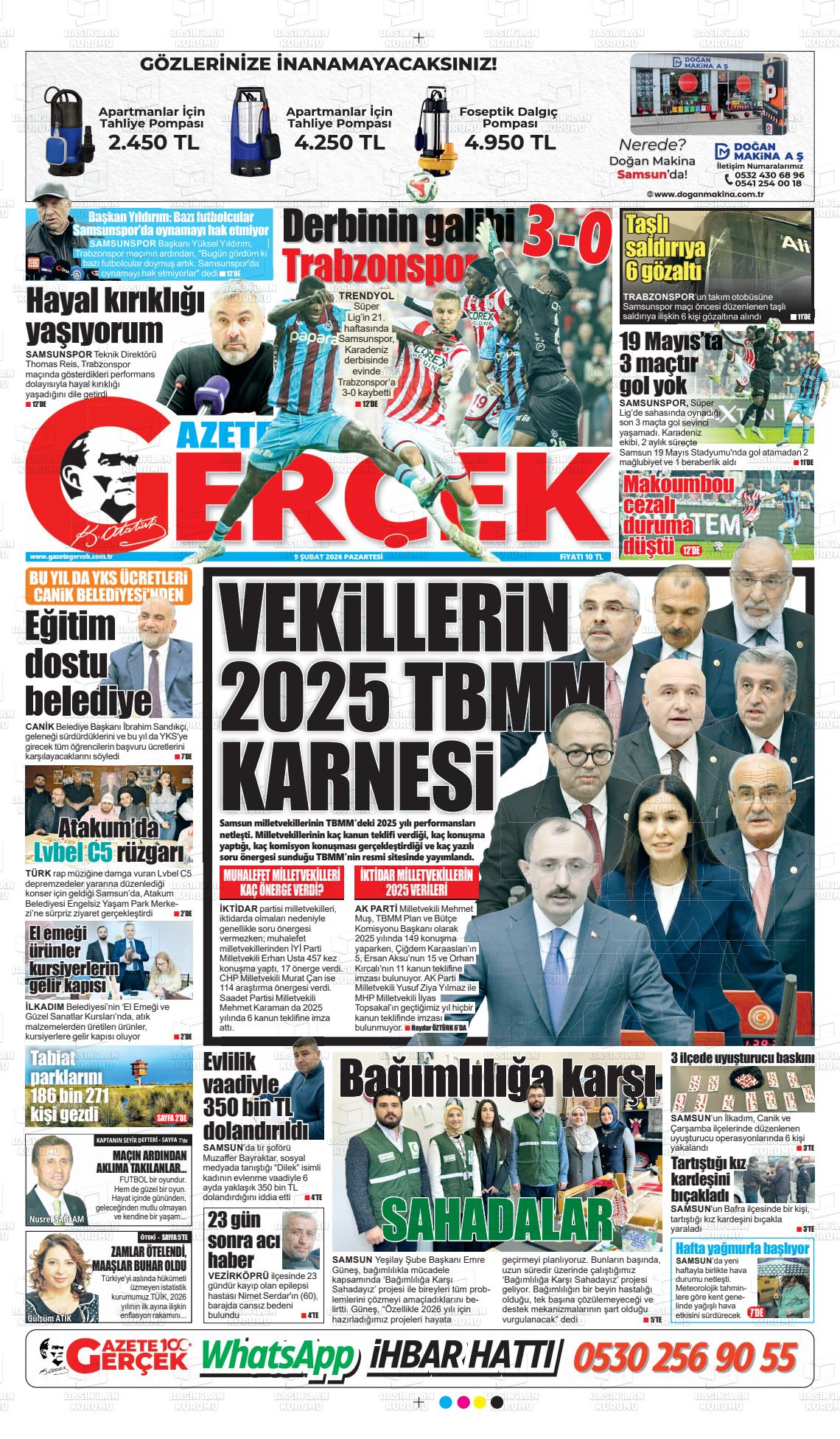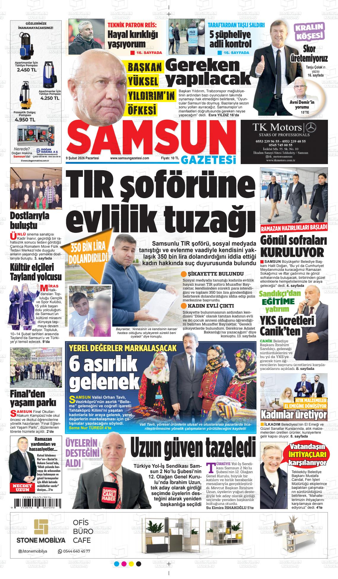 Samsun Yerel Gazeteleri 03 Şubat 2026, Salı Günü Manşeti