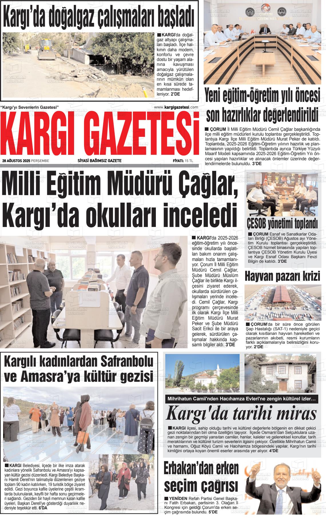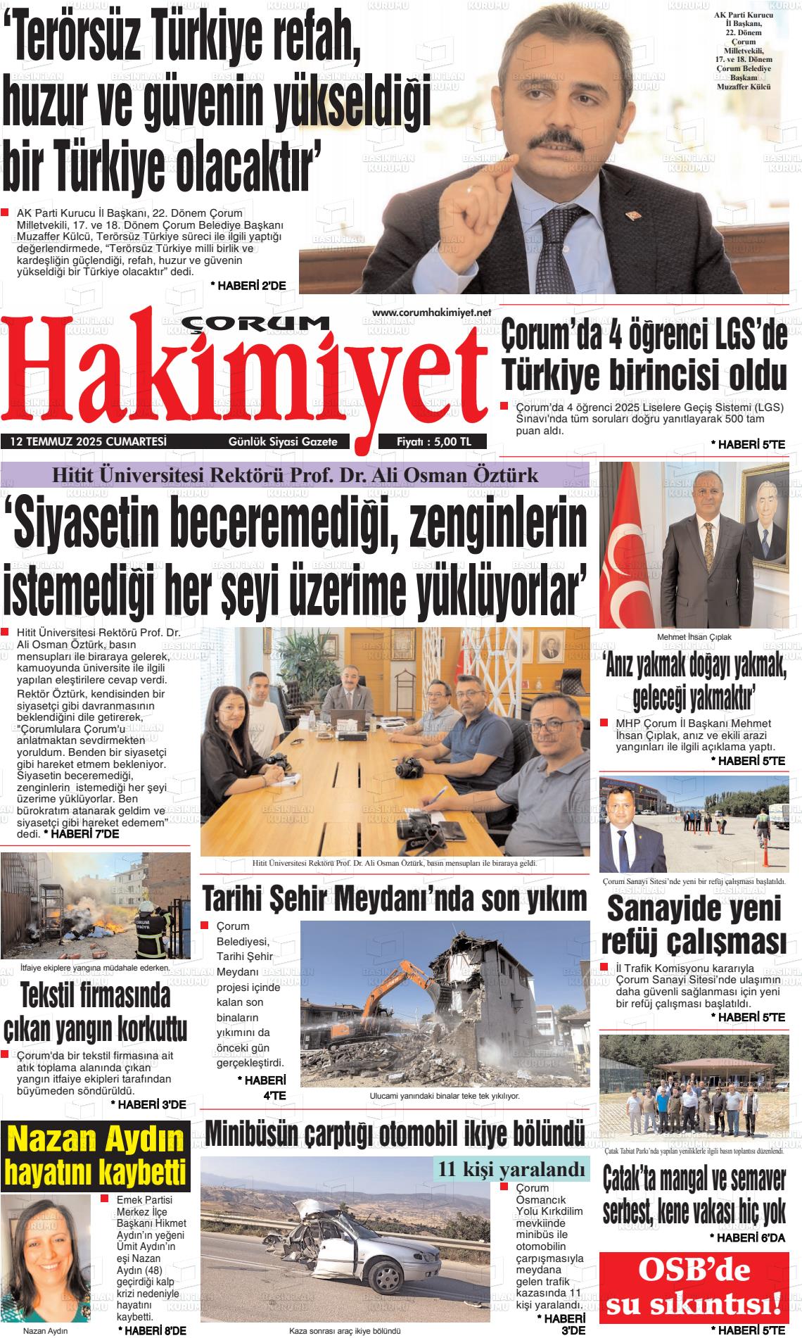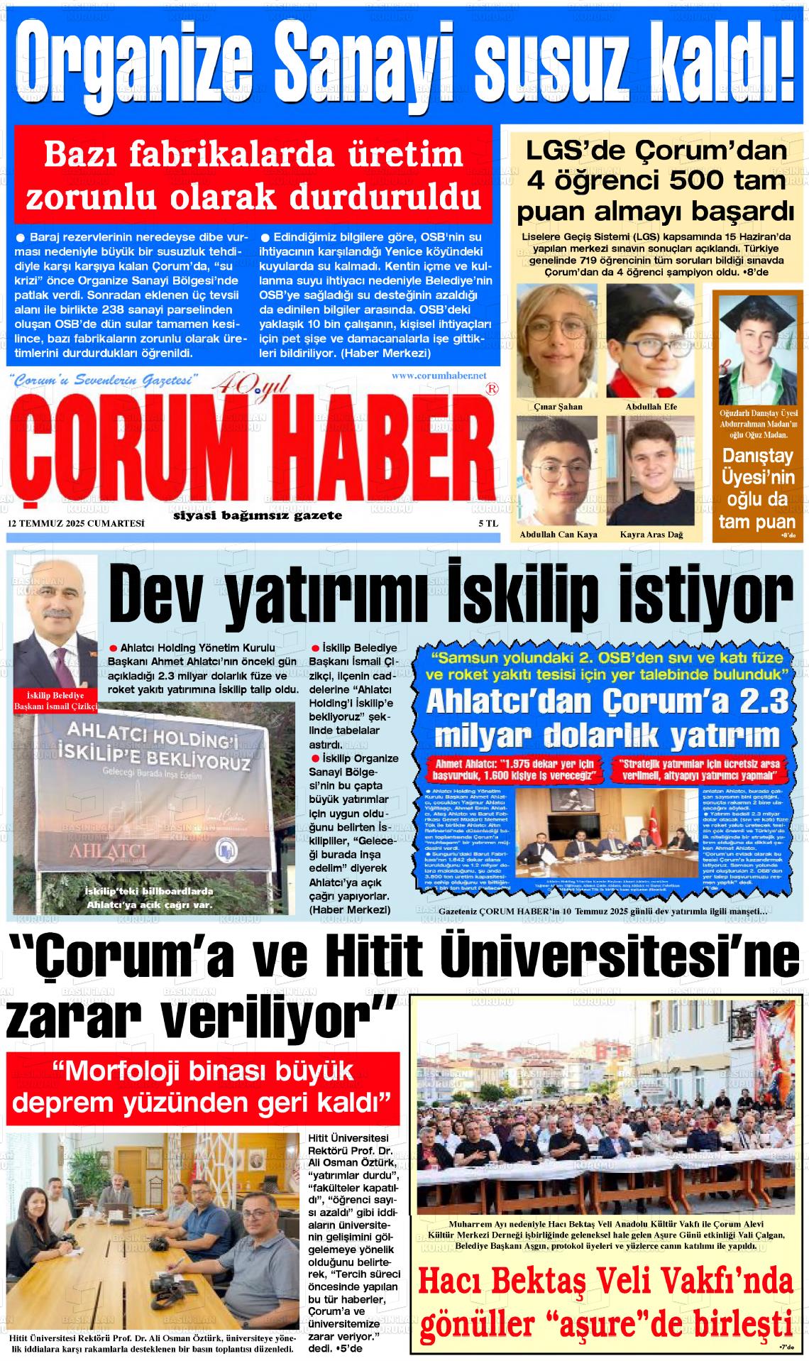 Çorum Yerel Gazeteleri 23 Ekim 2025, Perşembe Günü Manşeti