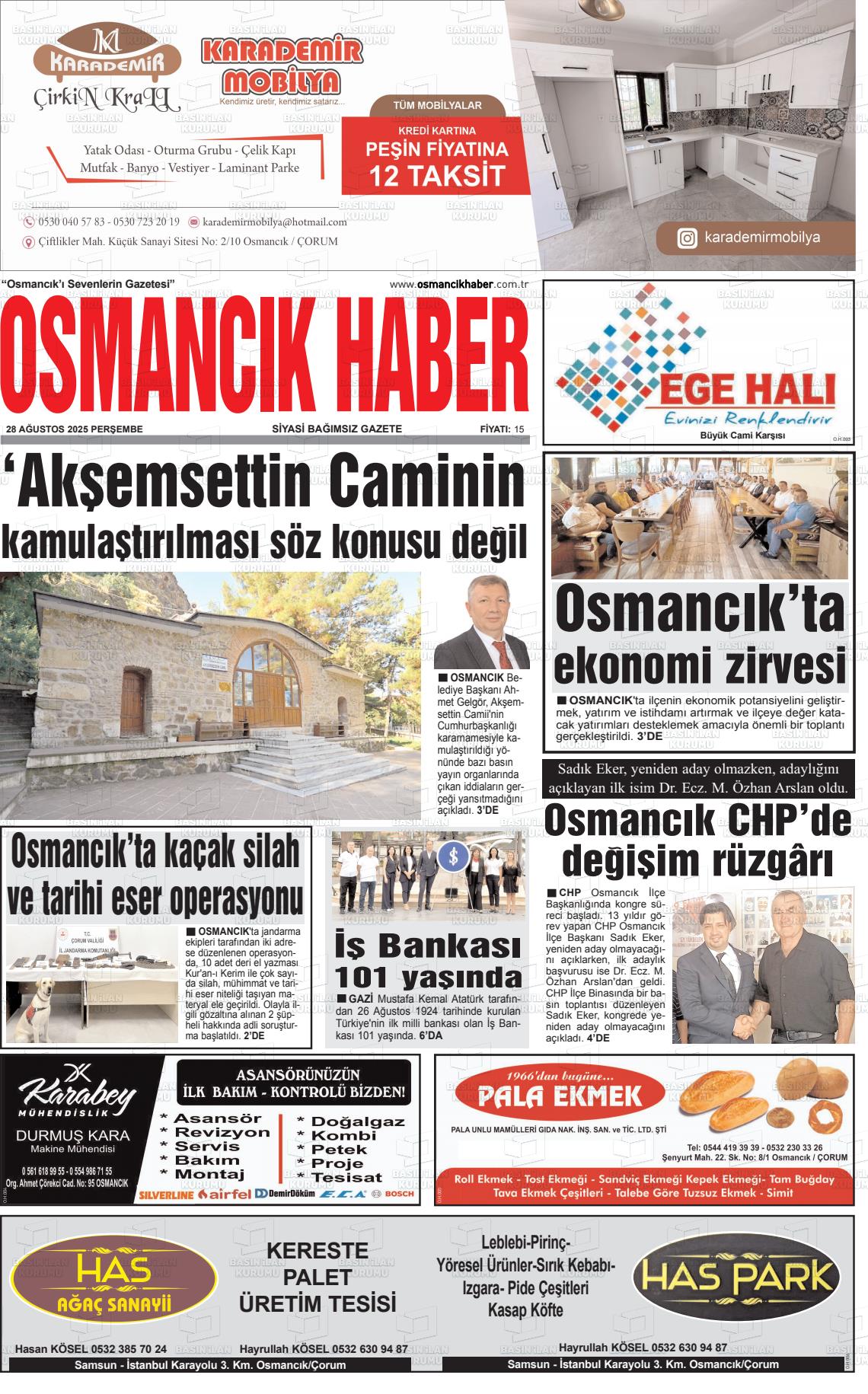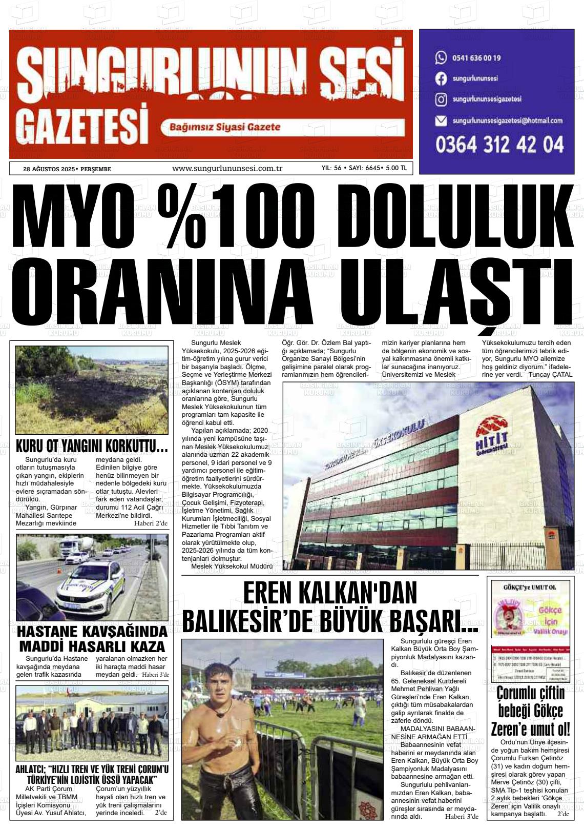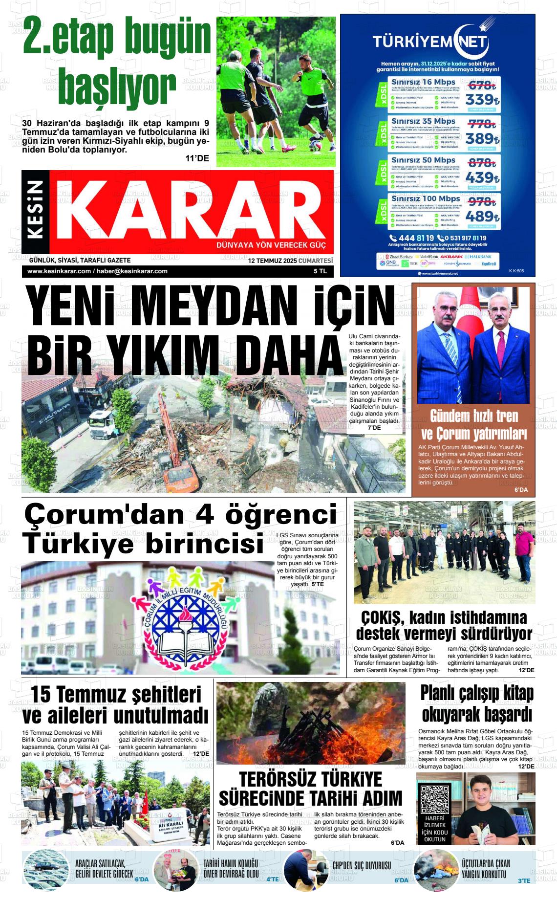 Çorum Yerel Gazeteleri 23 Ekim 2025, Perşembe Günü Manşeti