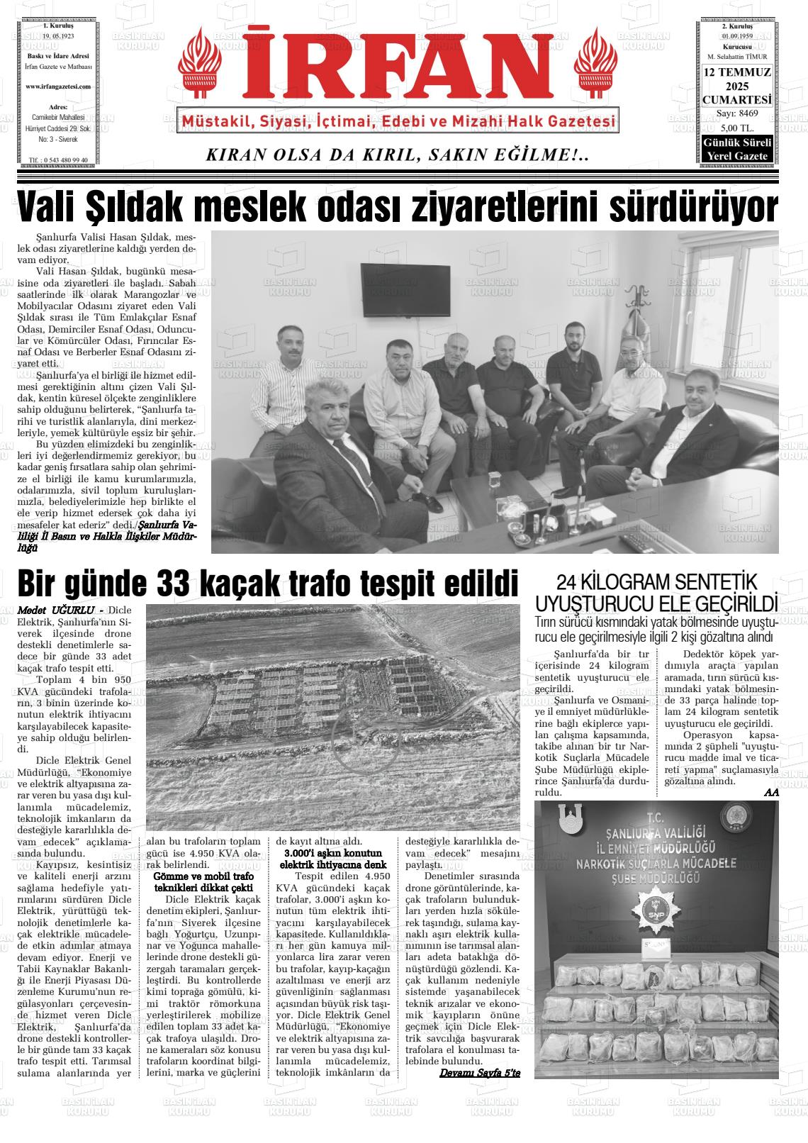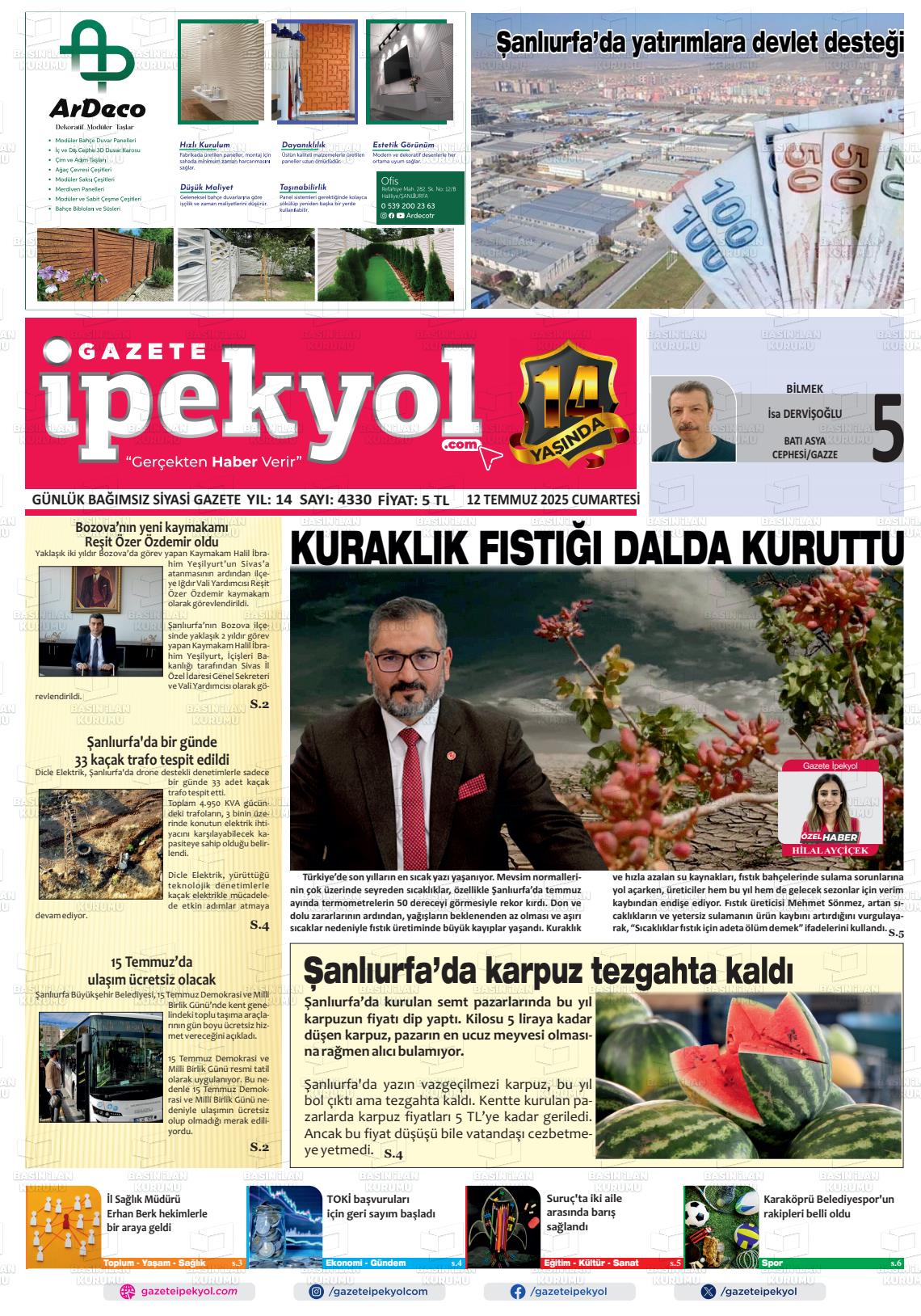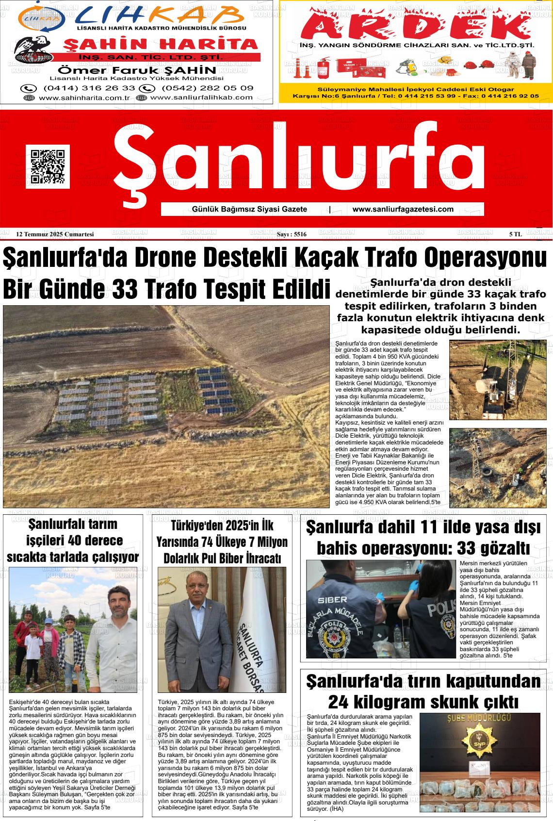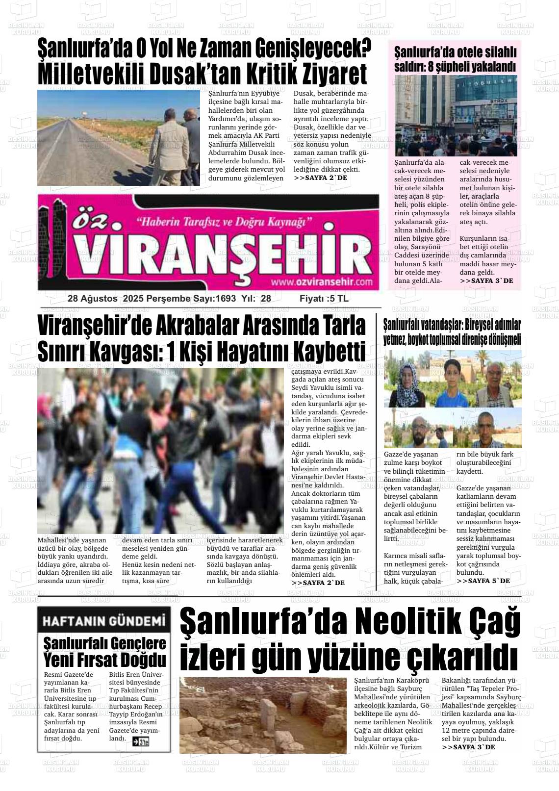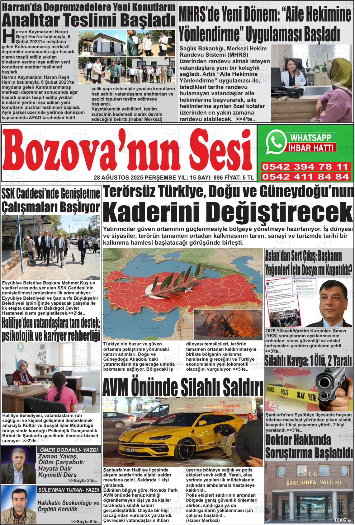 Şanlıurfa Yerel Gazeteleri 23 Ekim 2025, Perşembe Günü Manşeti