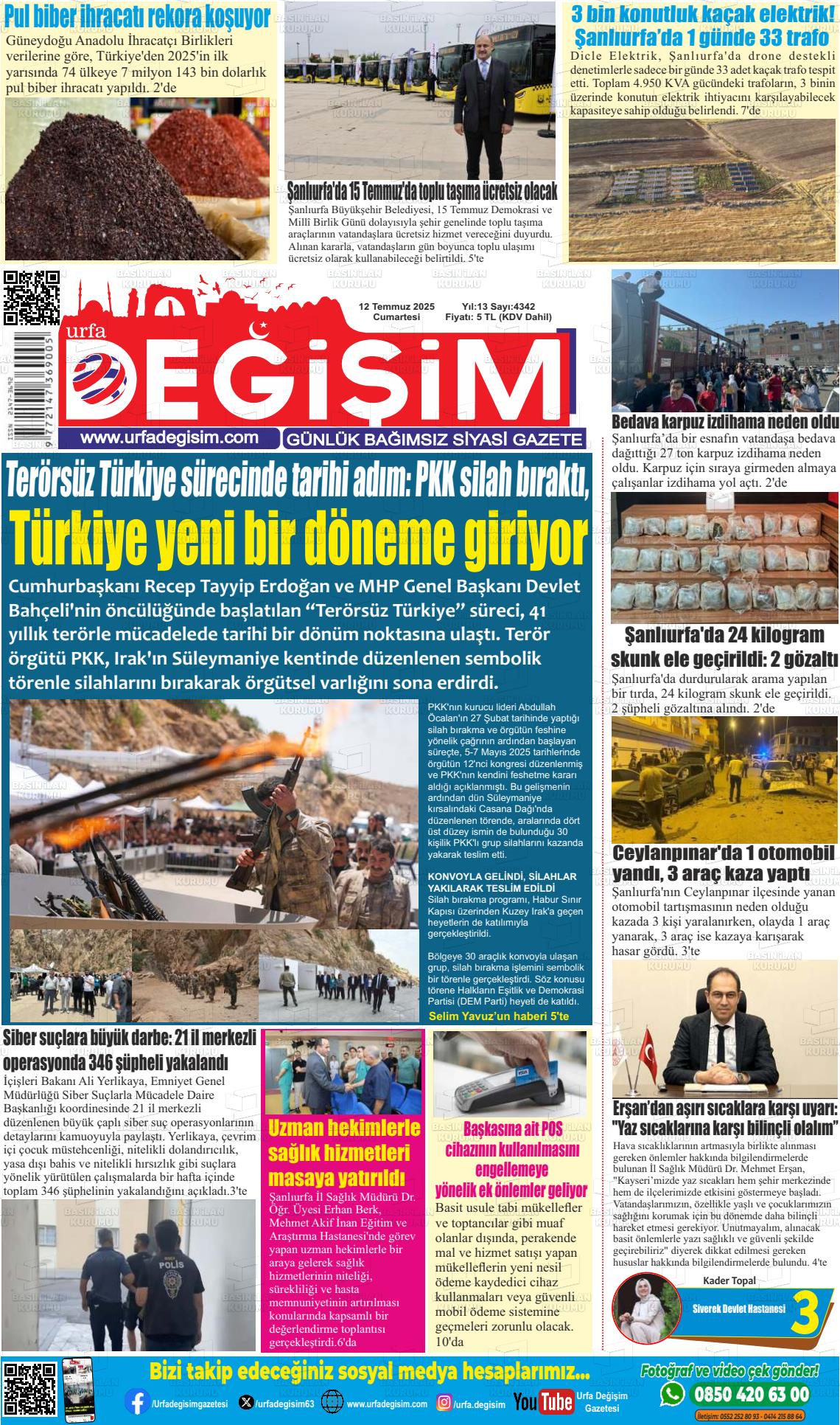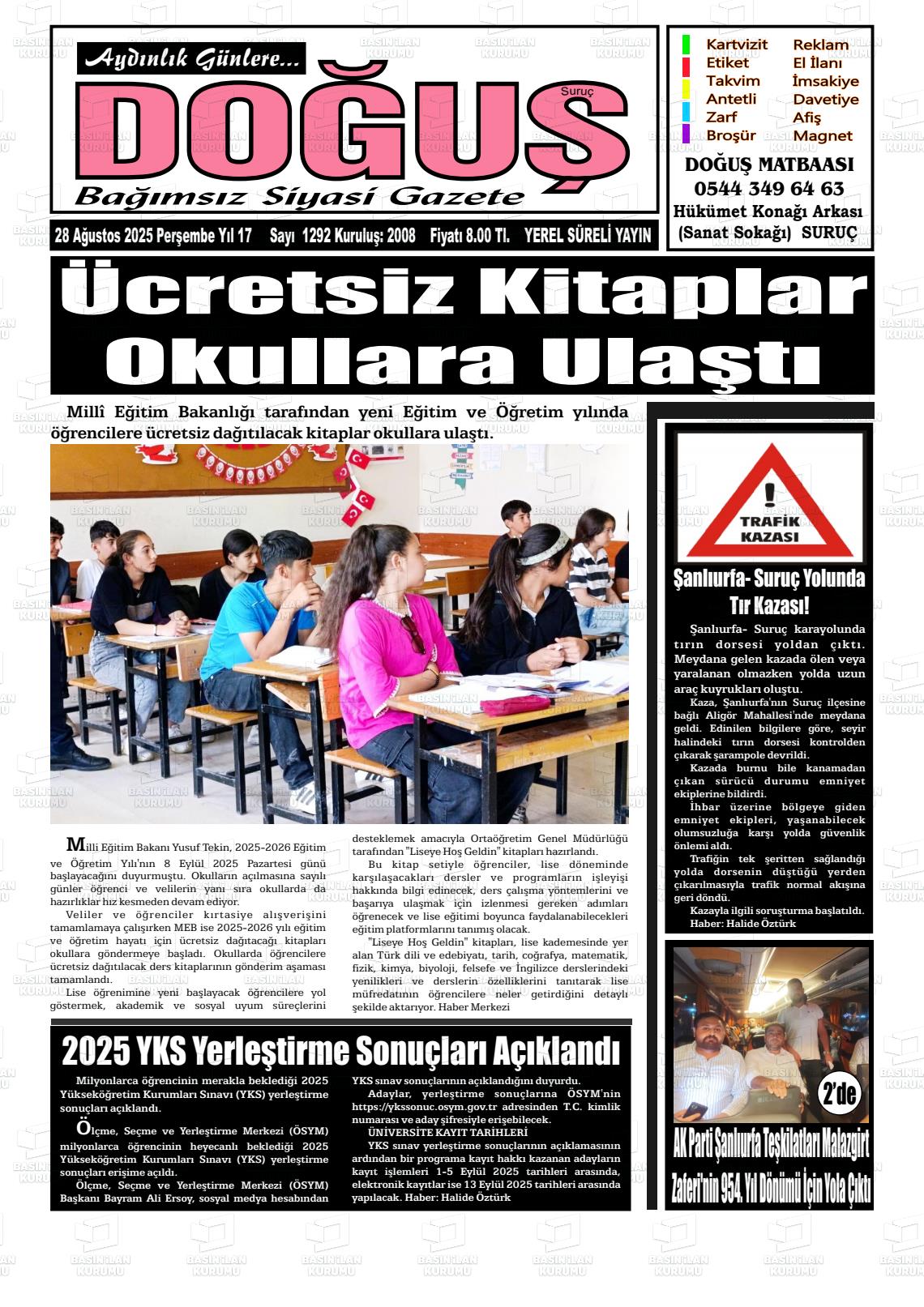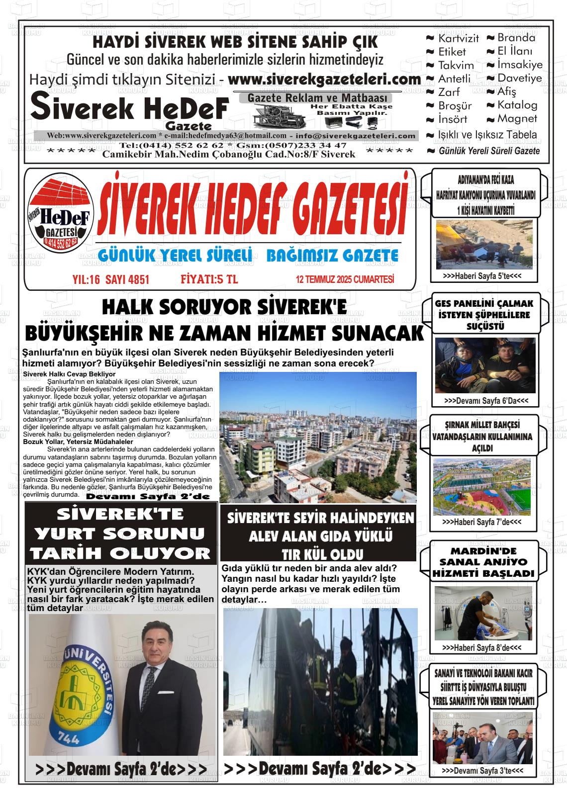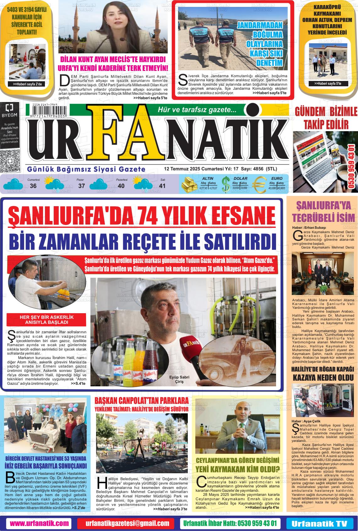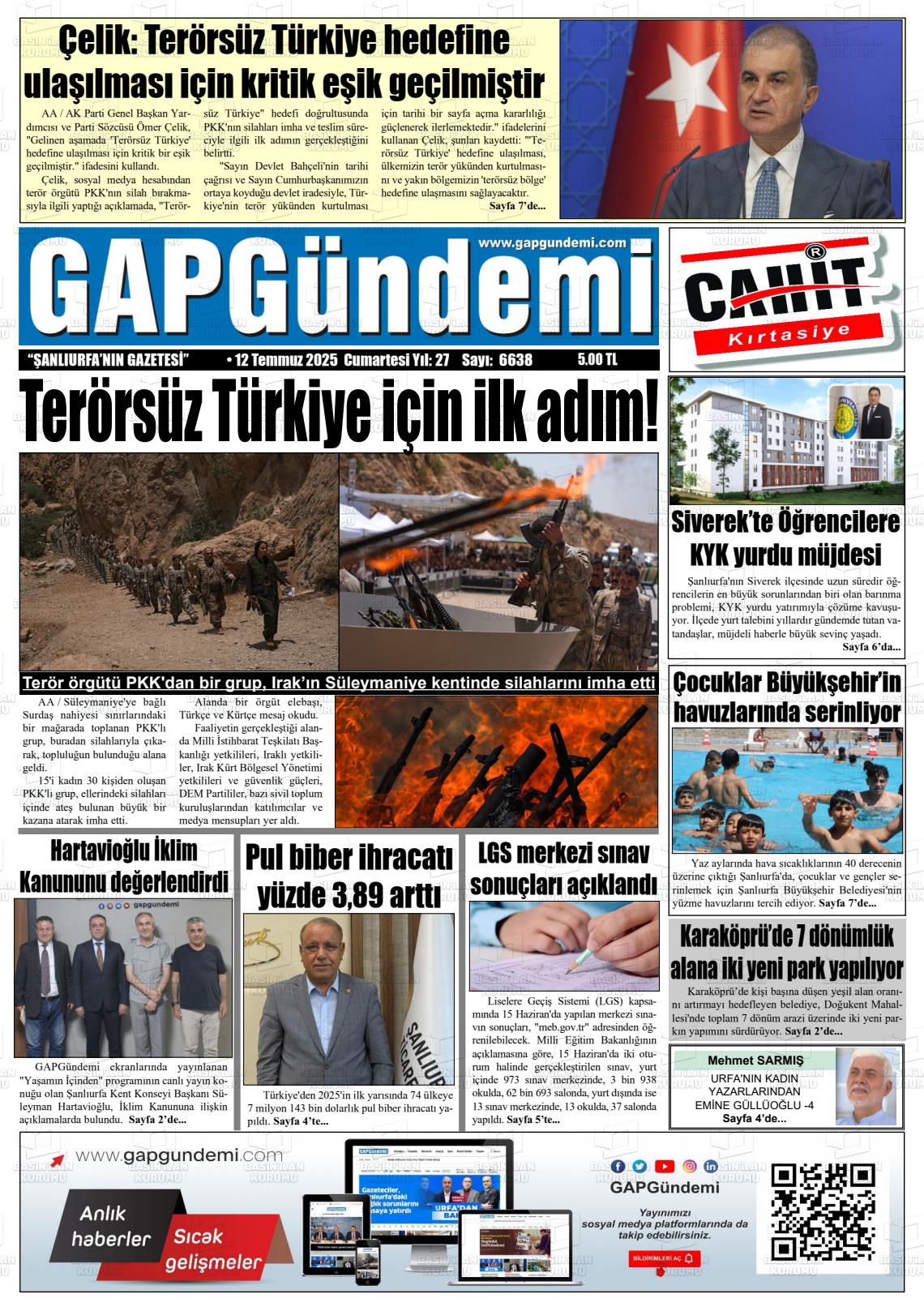 Şanlıurfa Yerel Gazeteleri 23 Ekim 2025, Perşembe Günü Manşeti