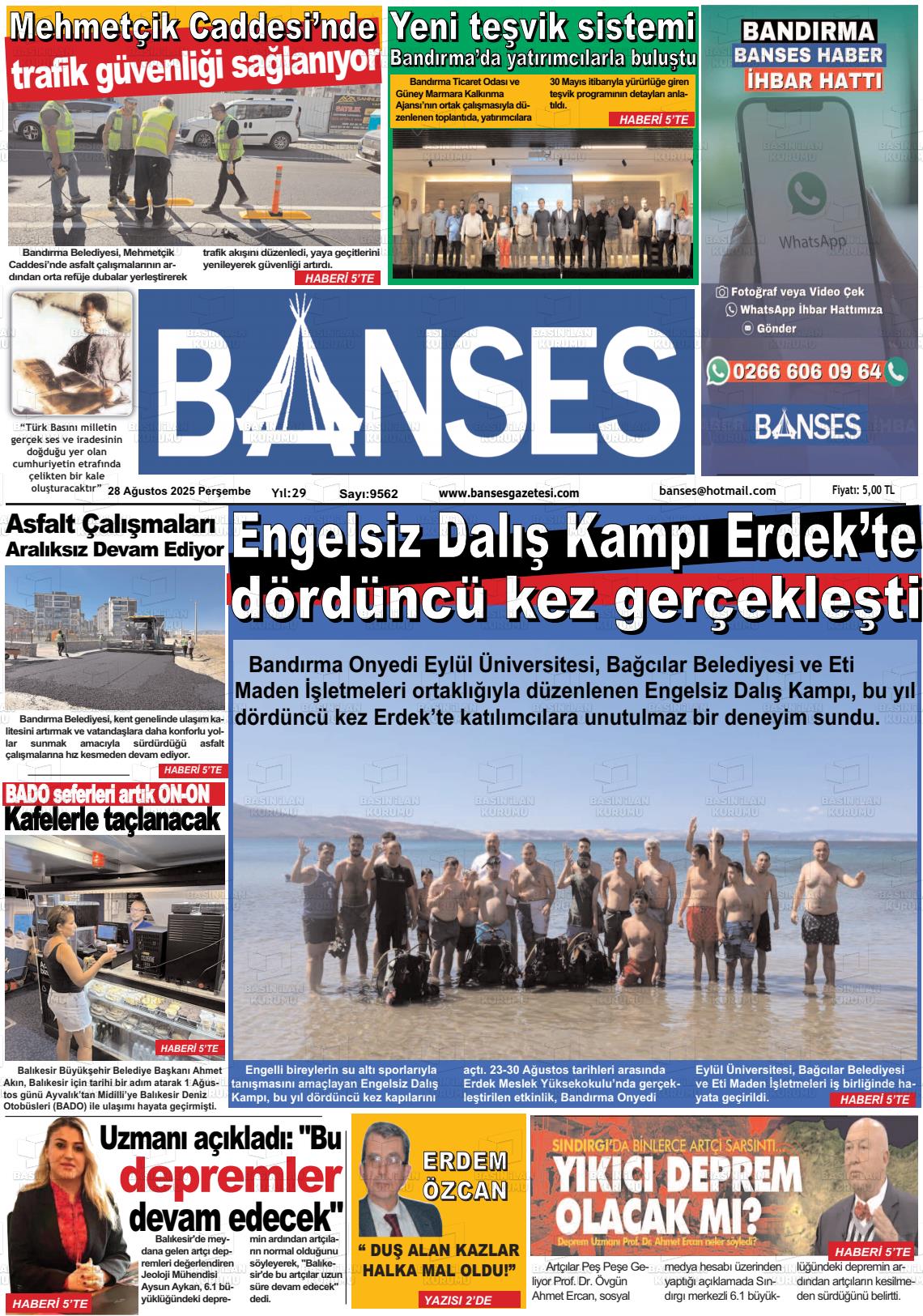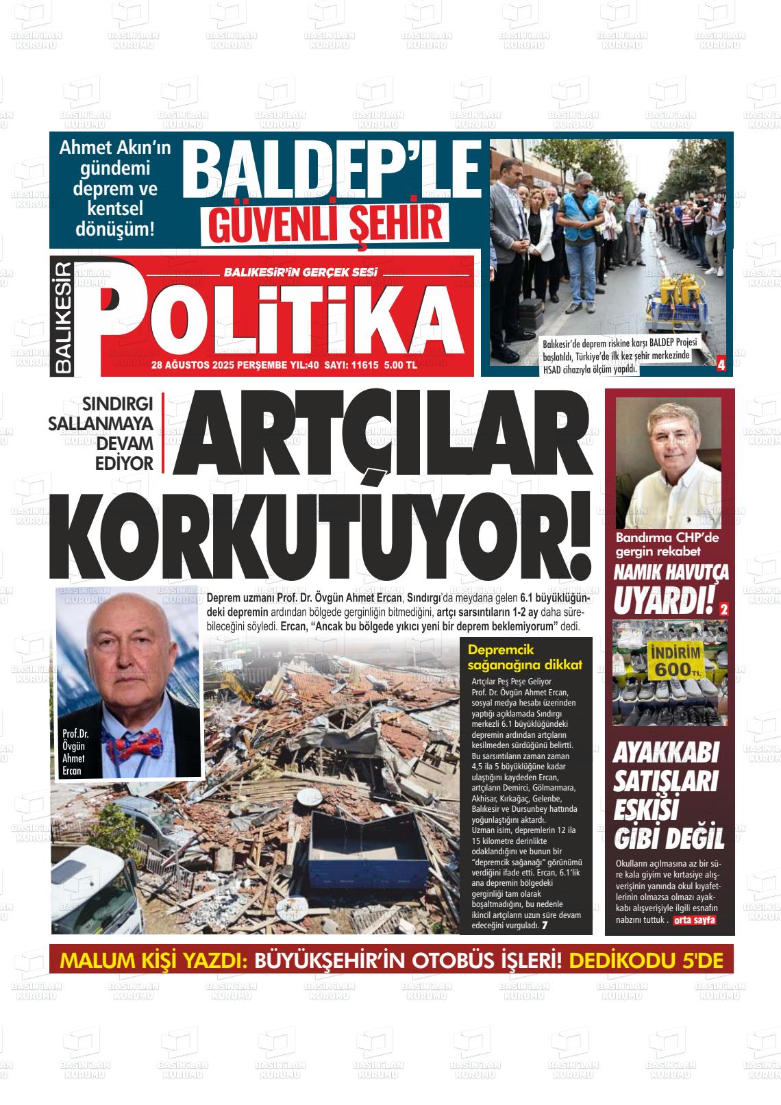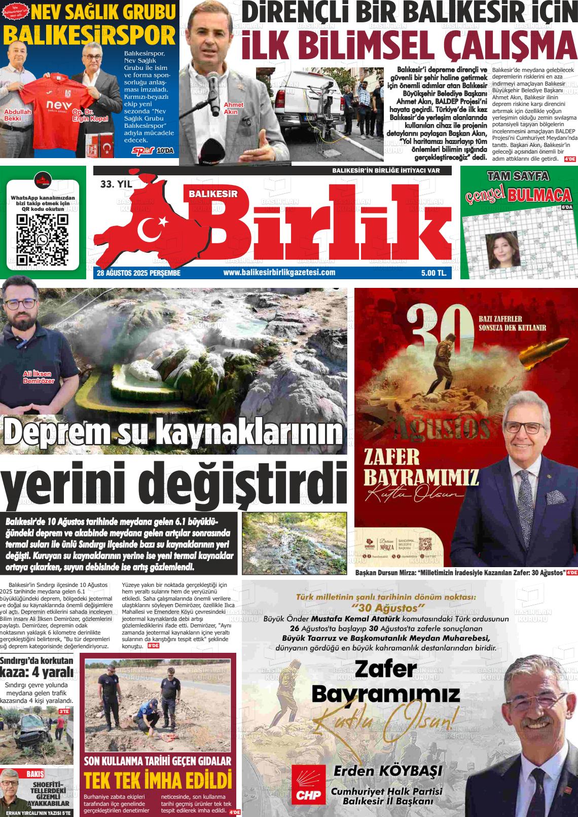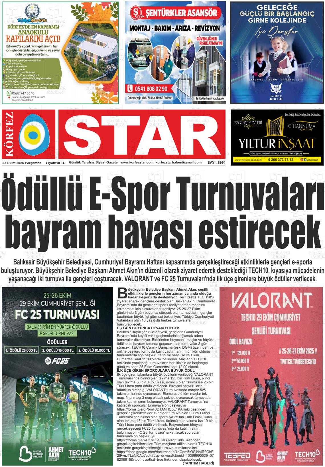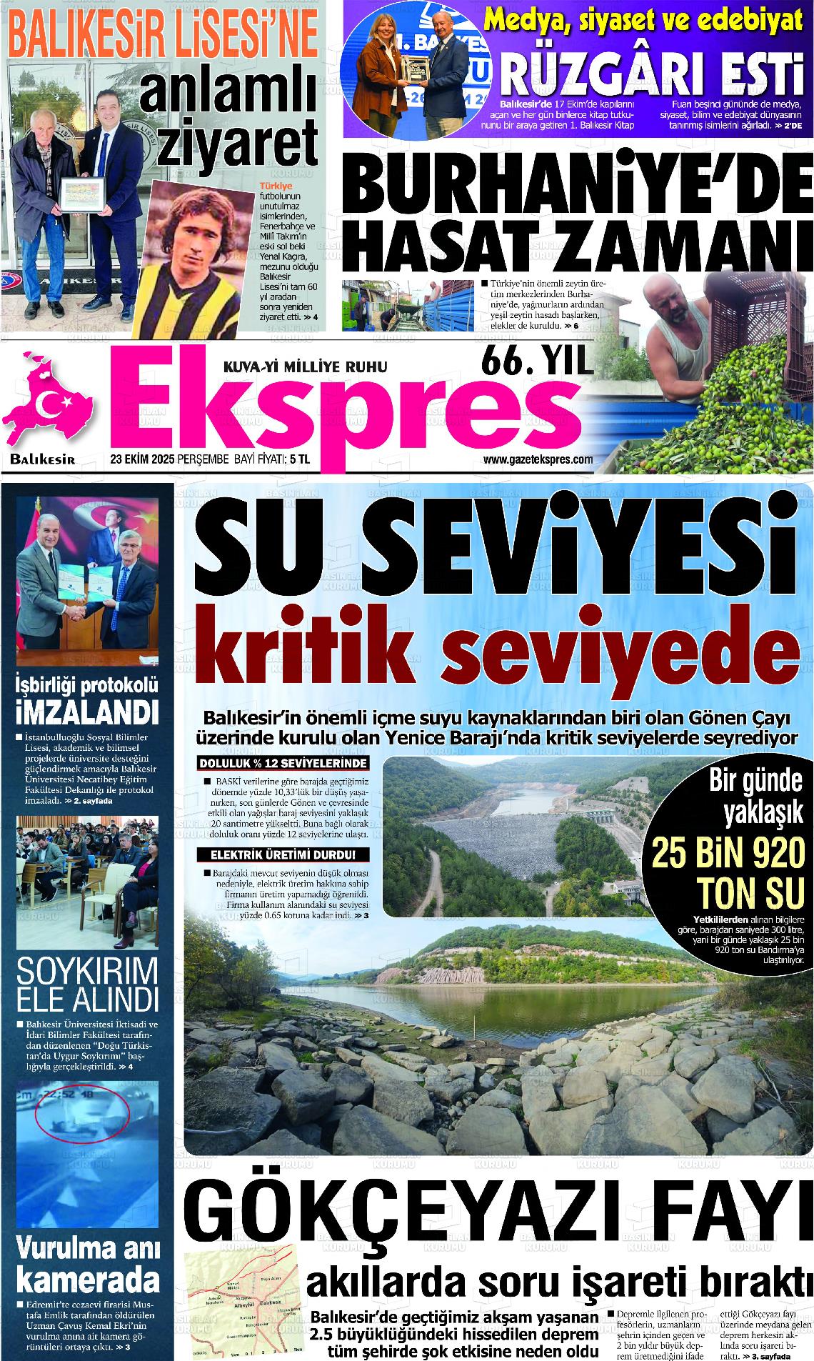 Balıkesİr Yerel Gazeteleri 23 Ekim 2025, Perşembe Günü Manşeti