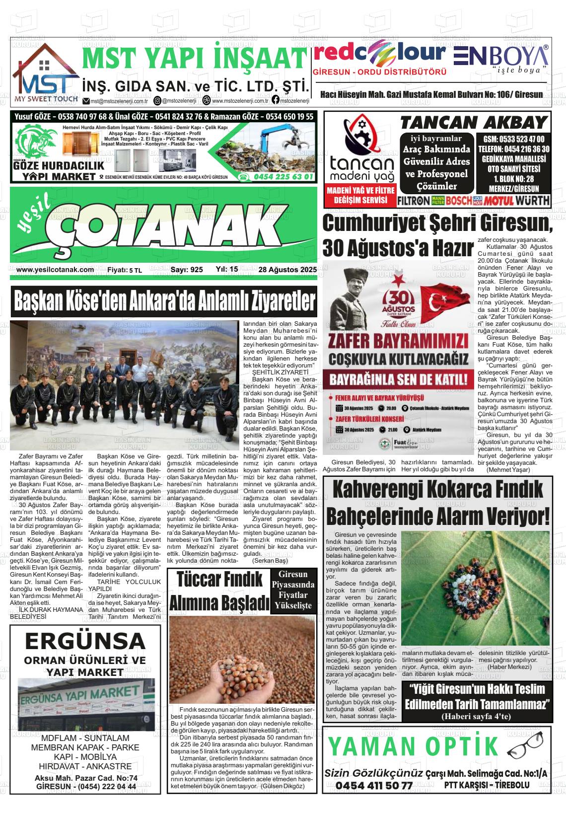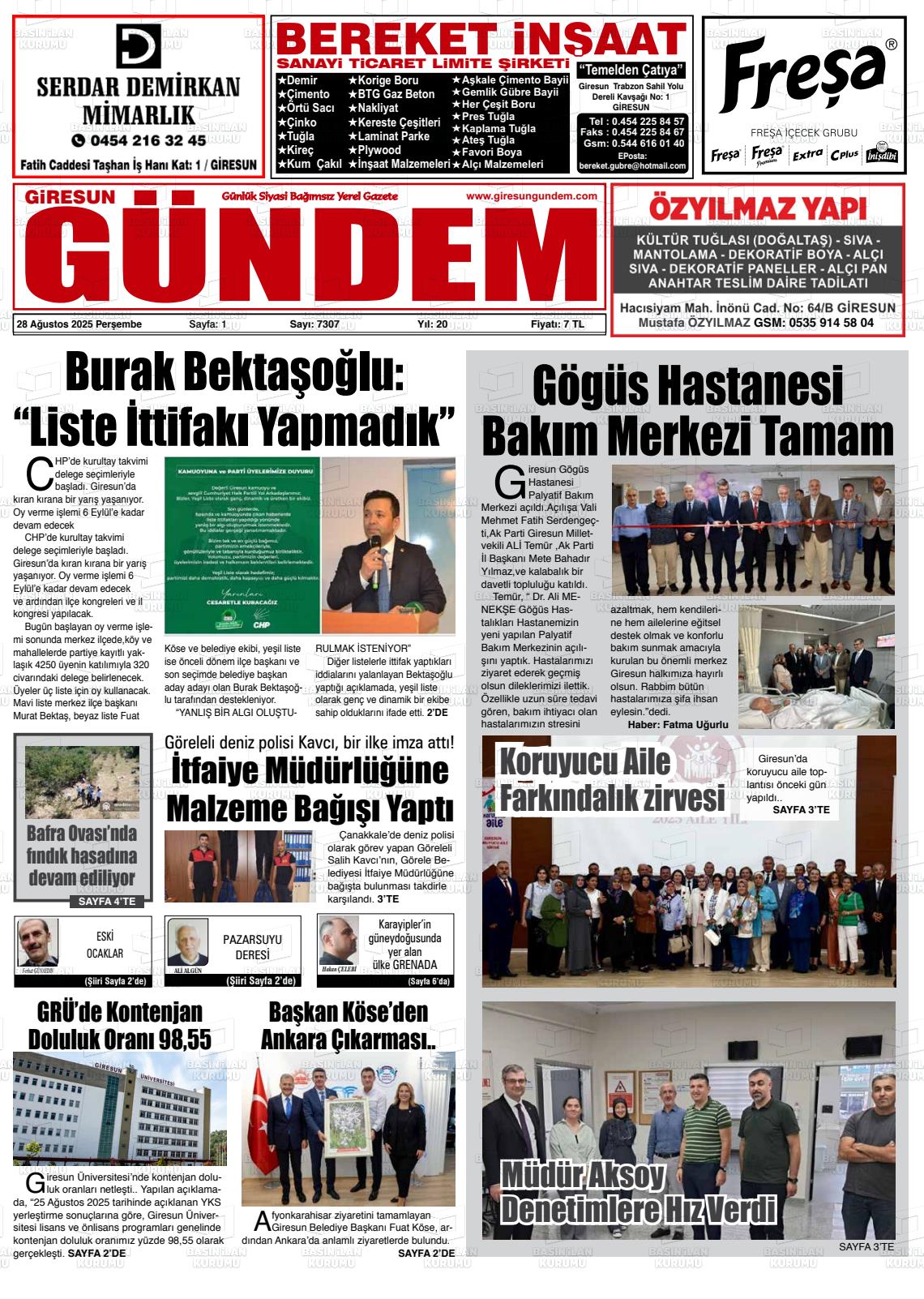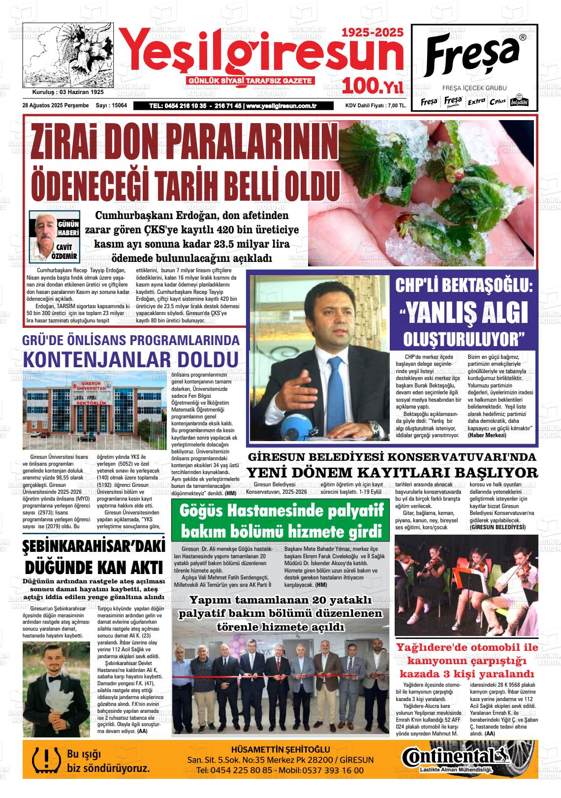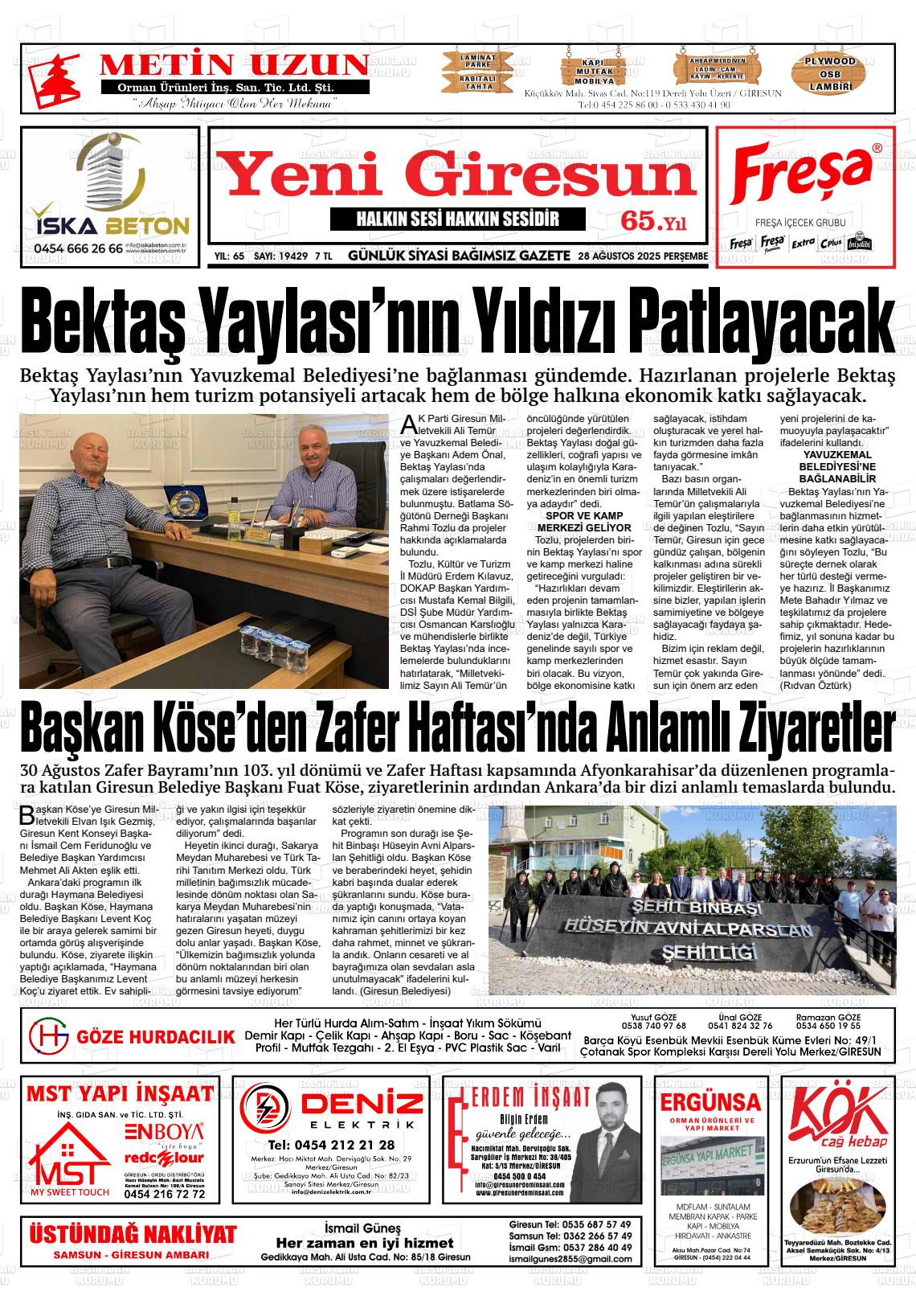 Gİresun Yerel Gazeteleri 23 Ekim 2025, Perşembe Günü Manşeti