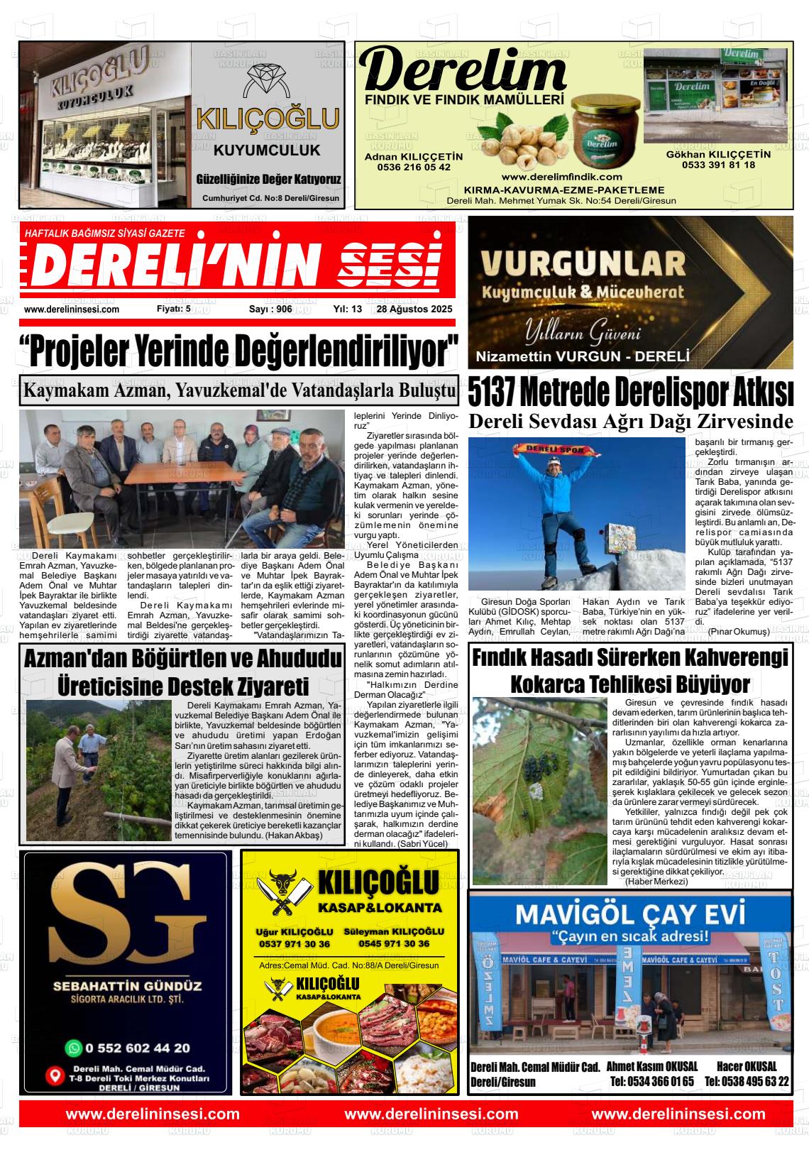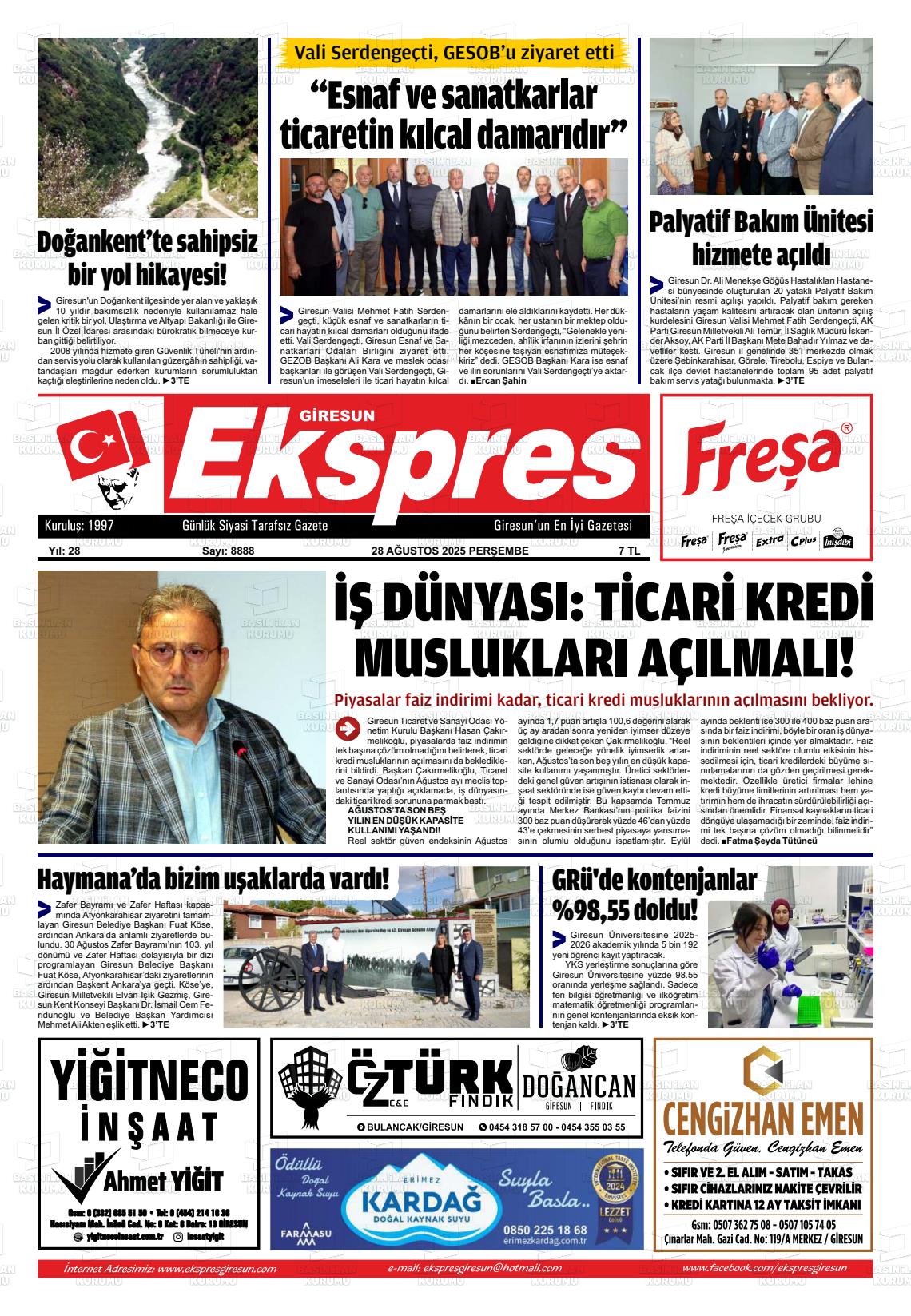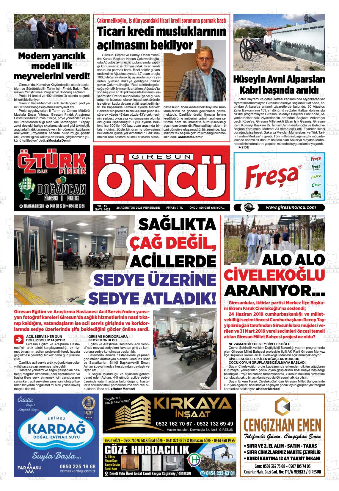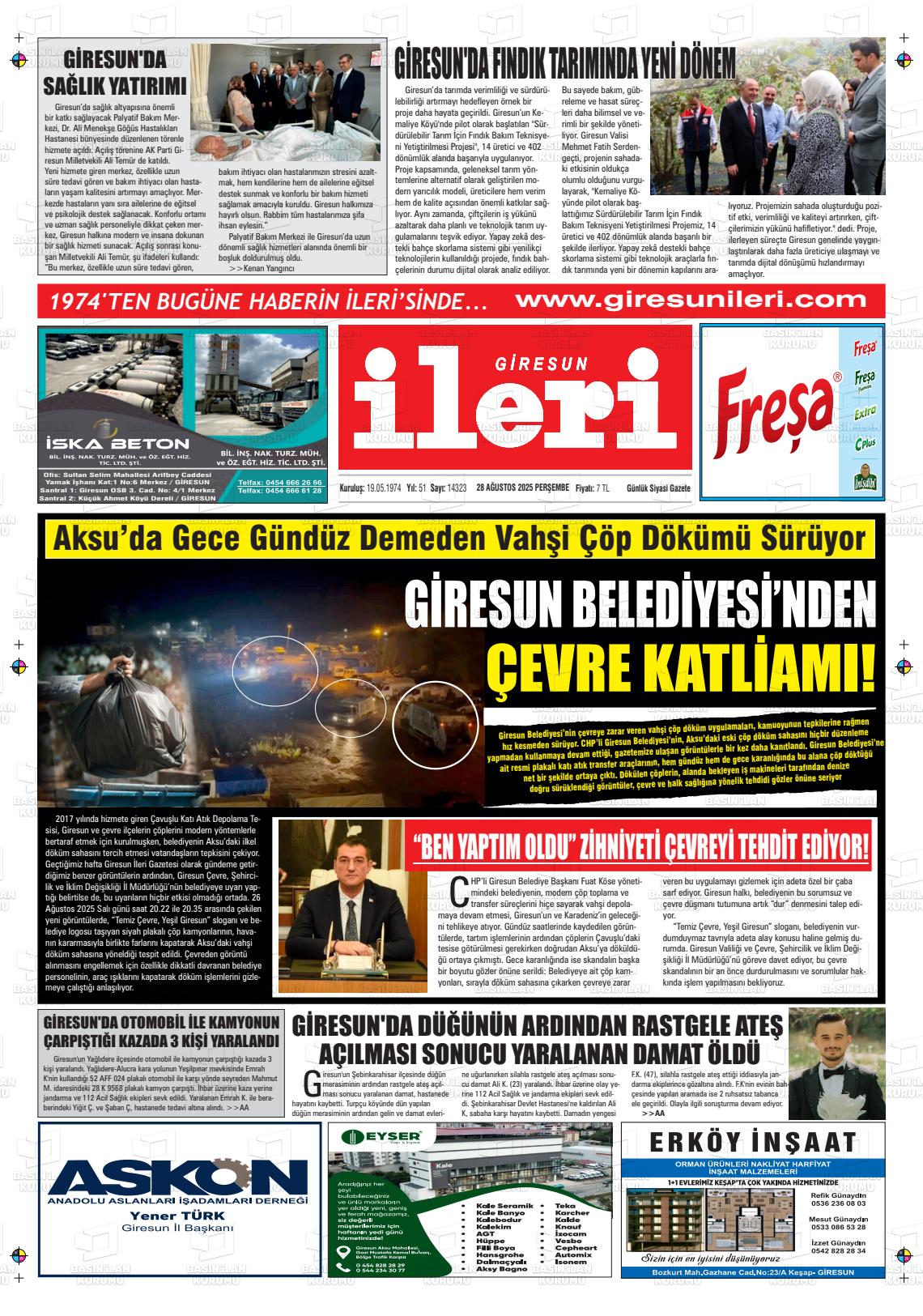 Gİresun Yerel Gazeteleri 23 Ekim 2025, Perşembe Günü Manşeti