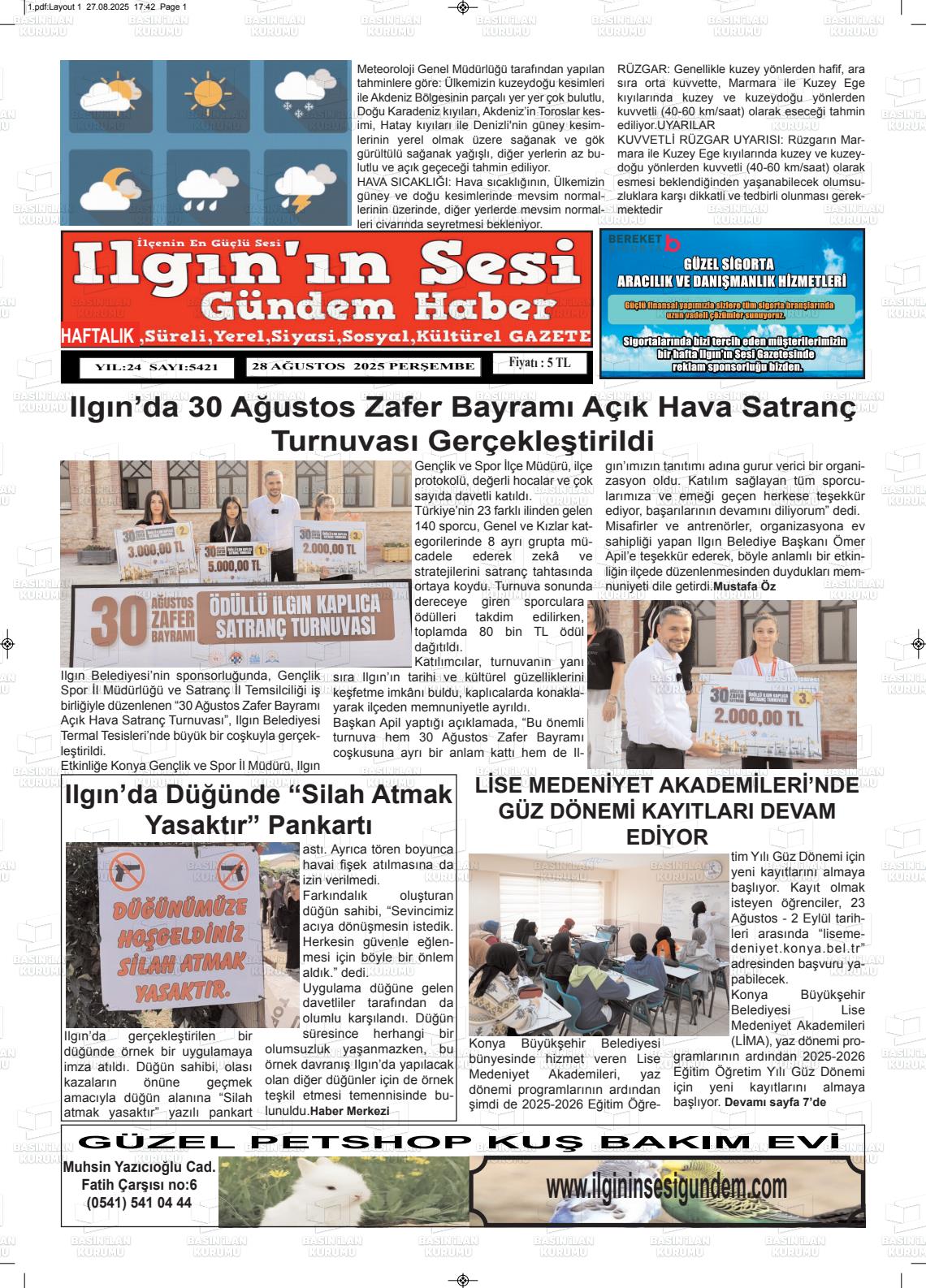 Konya Yerel Gazeteleri 23 Ekim 2025, Perşembe Günü Manşeti