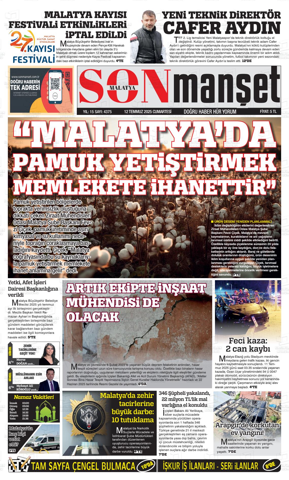 Malatya Yerel Gazeteleri 23 Ekim 2025, Perşembe Günü Manşeti