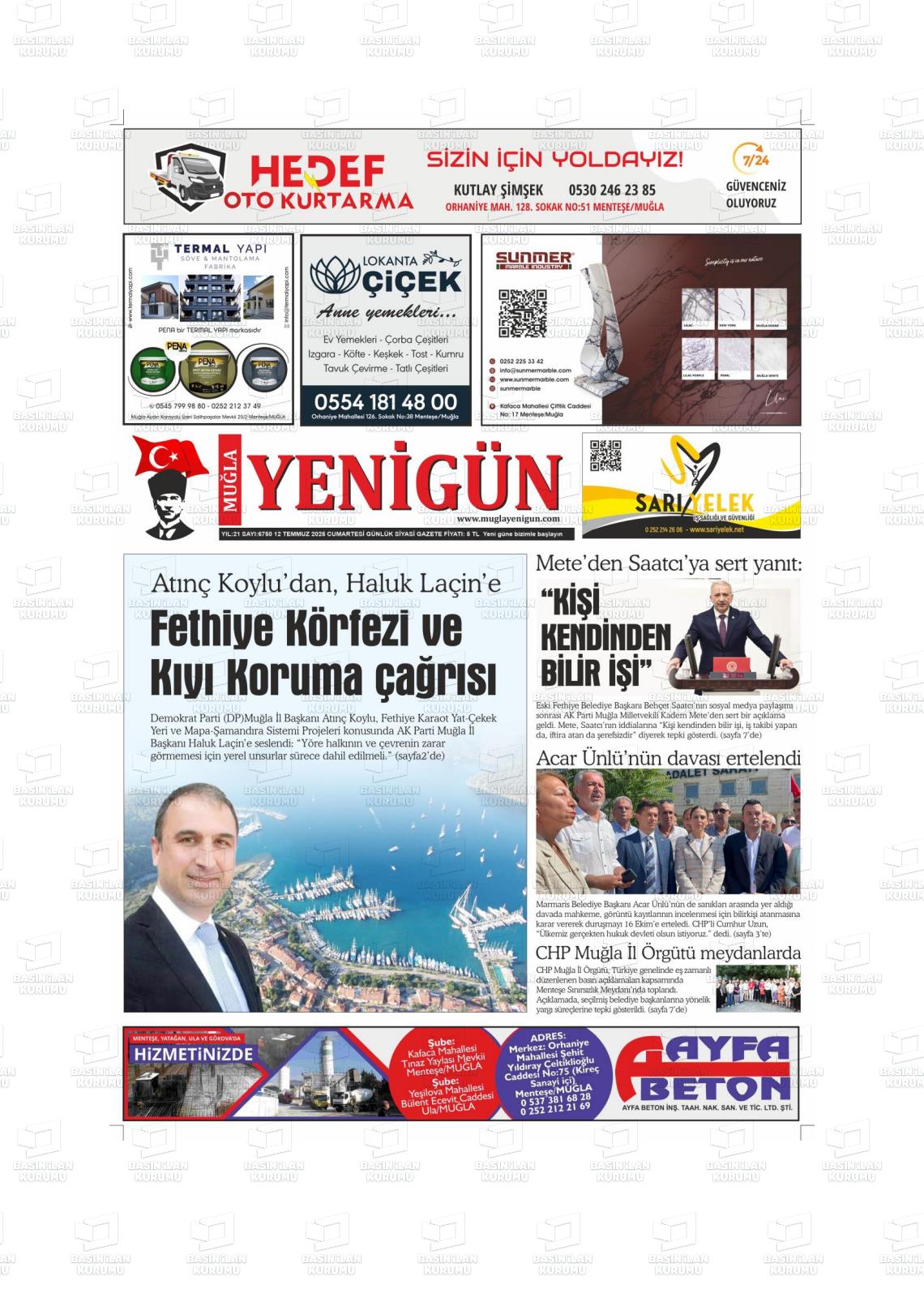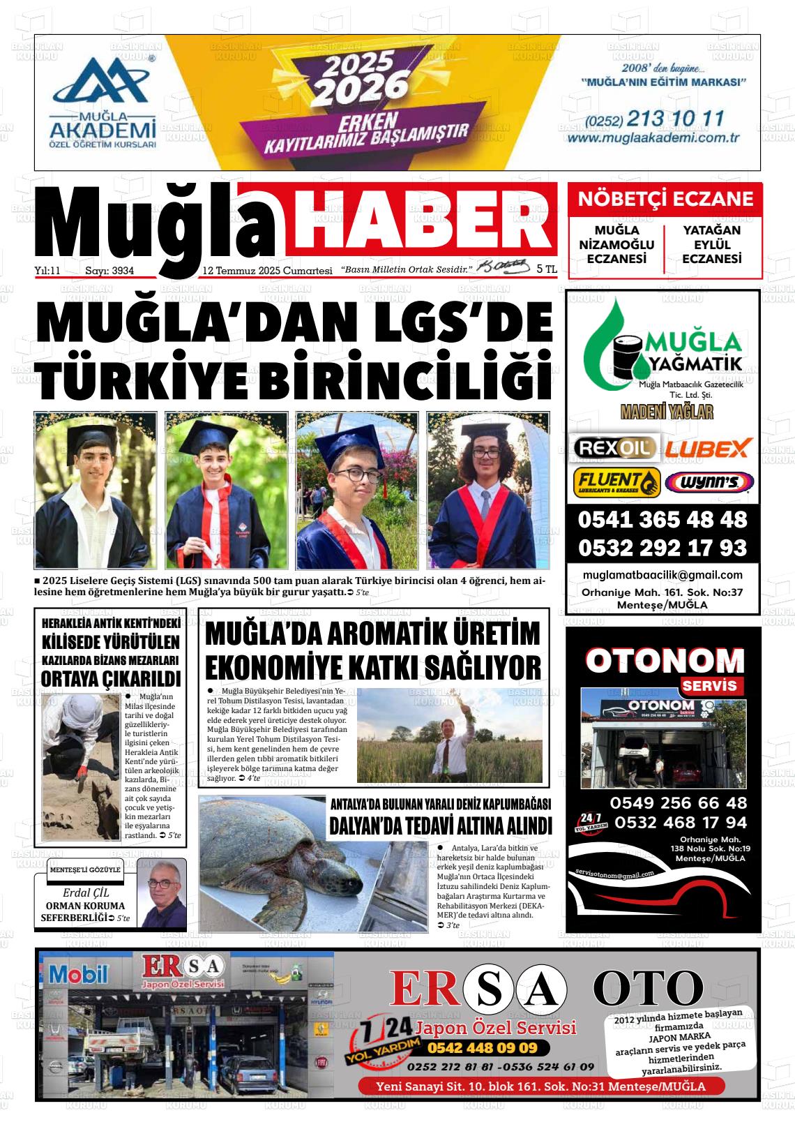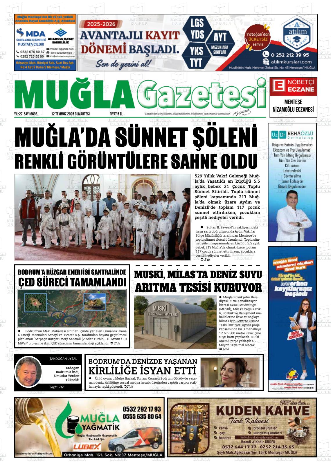 Muğla Yerel Gazeteleri 23 Ekim 2025, Perşembe Günü Manşeti