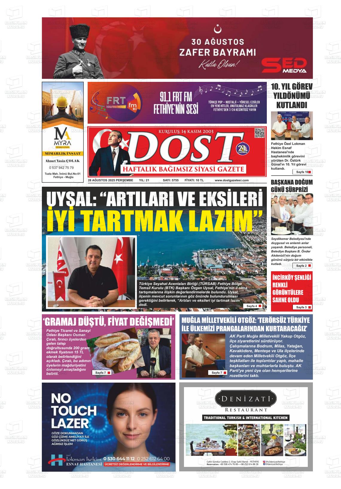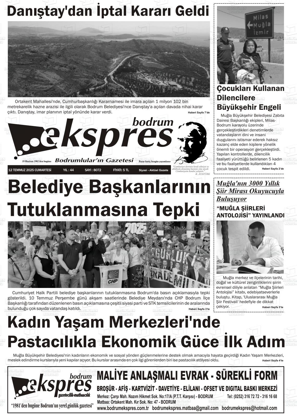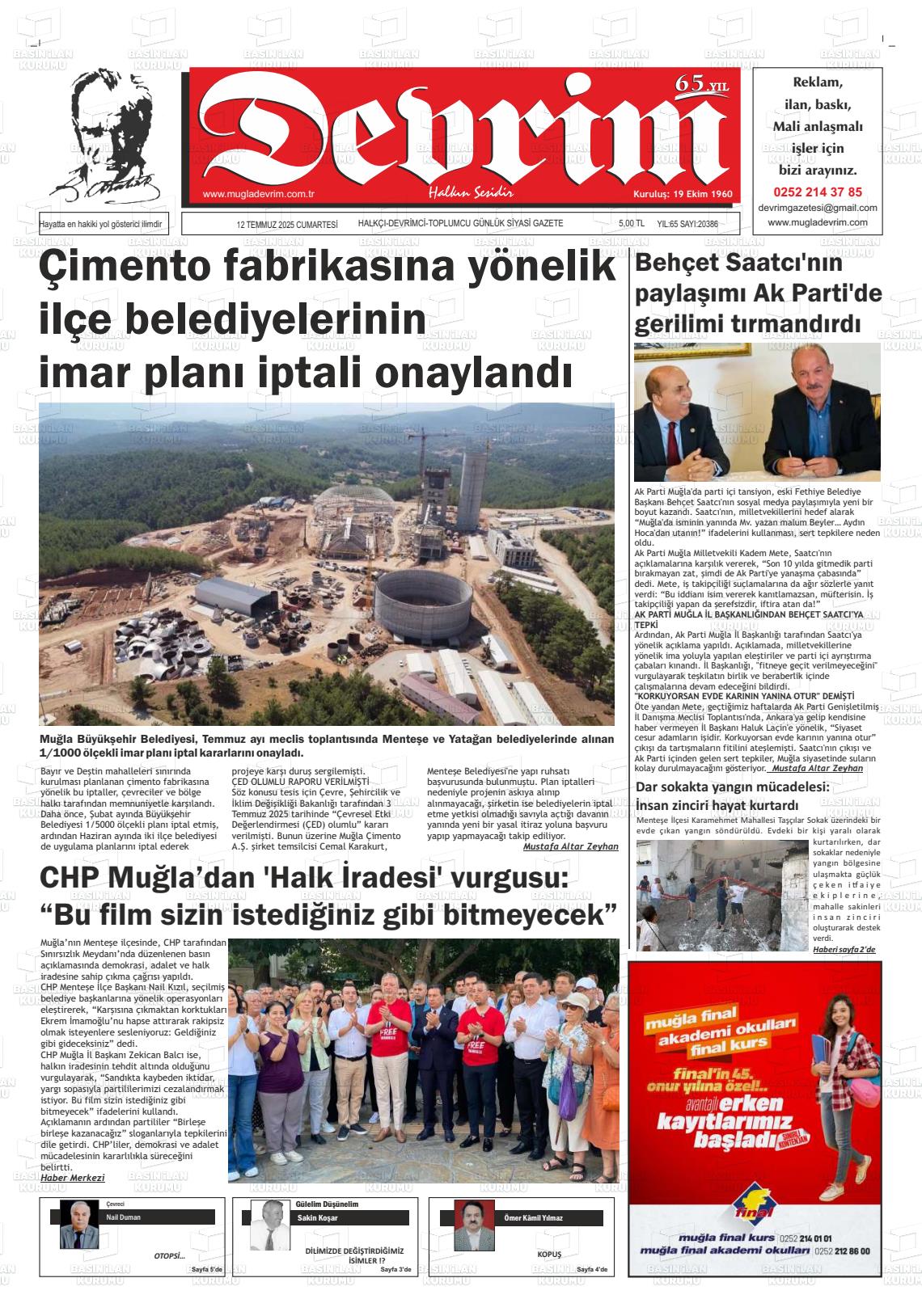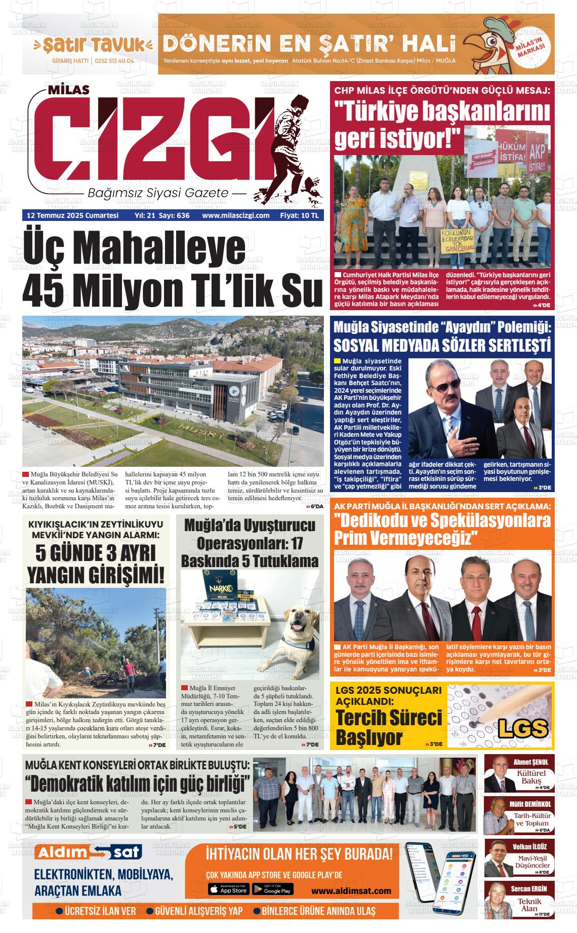 Muğla Yerel Gazeteleri 23 Ekim 2025, Perşembe Günü Manşeti