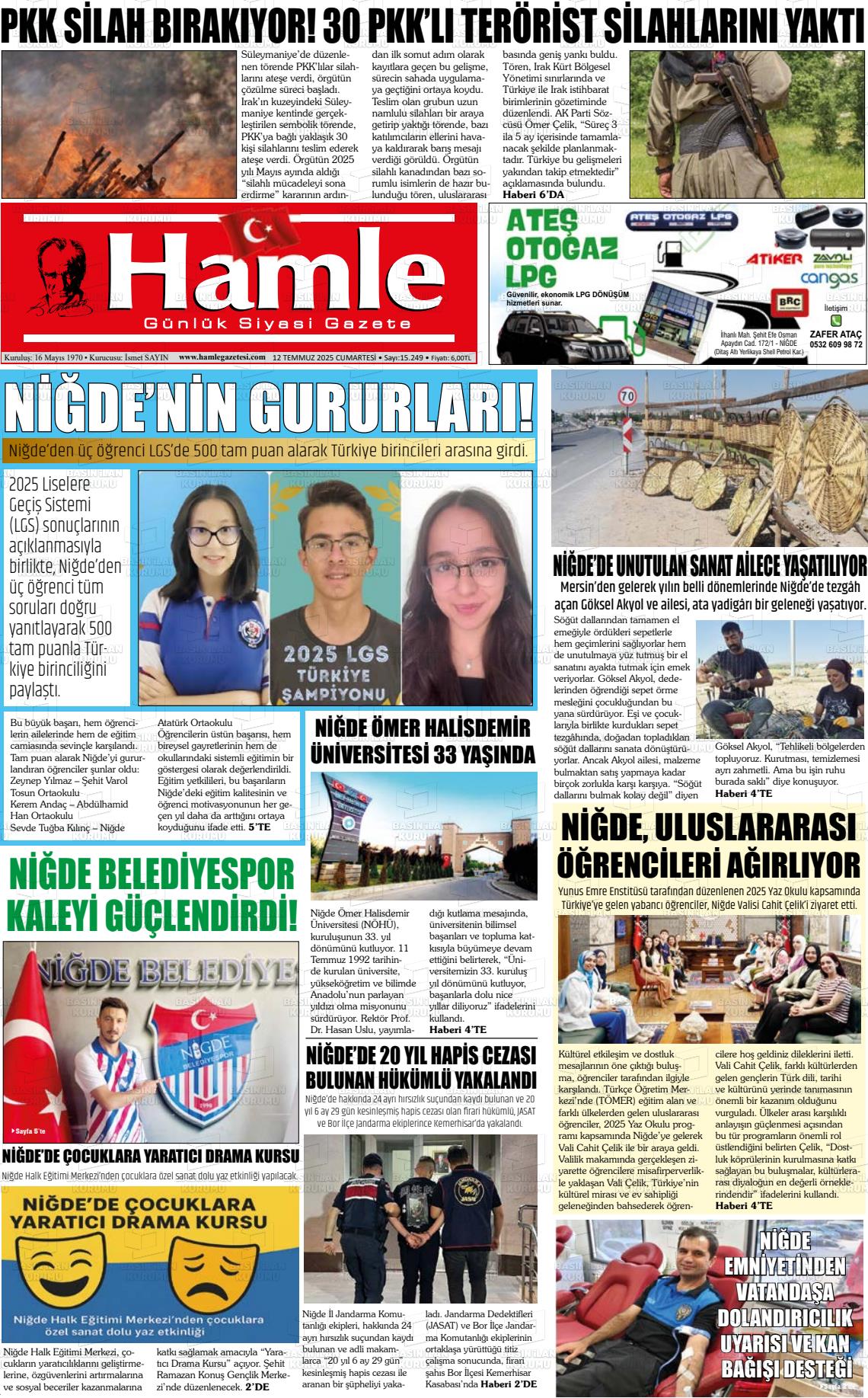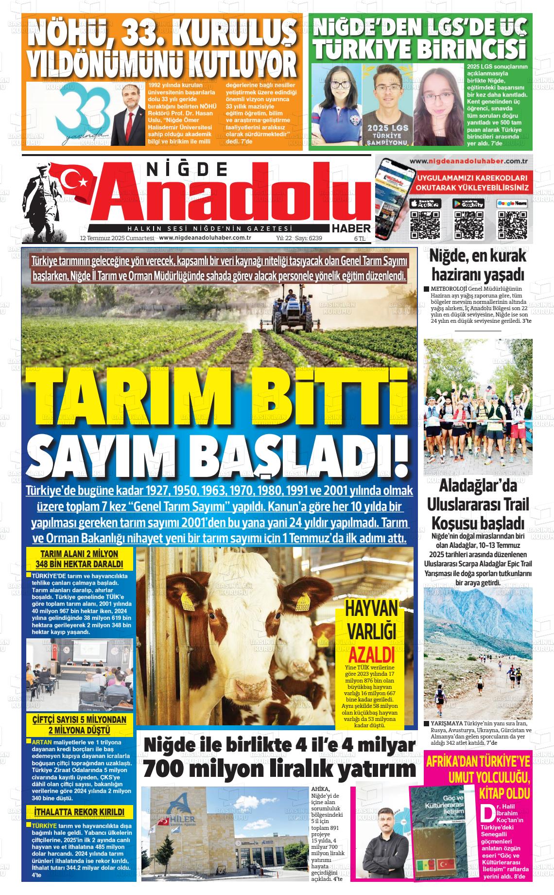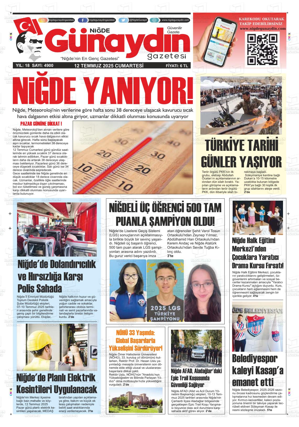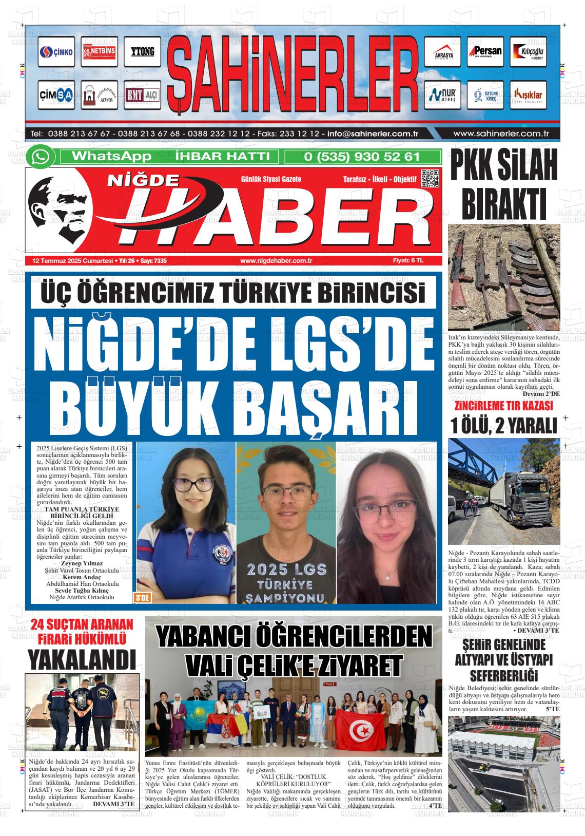 Nİğde Yerel Gazeteleri 23 Ekim 2025, Perşembe Günü Manşeti
