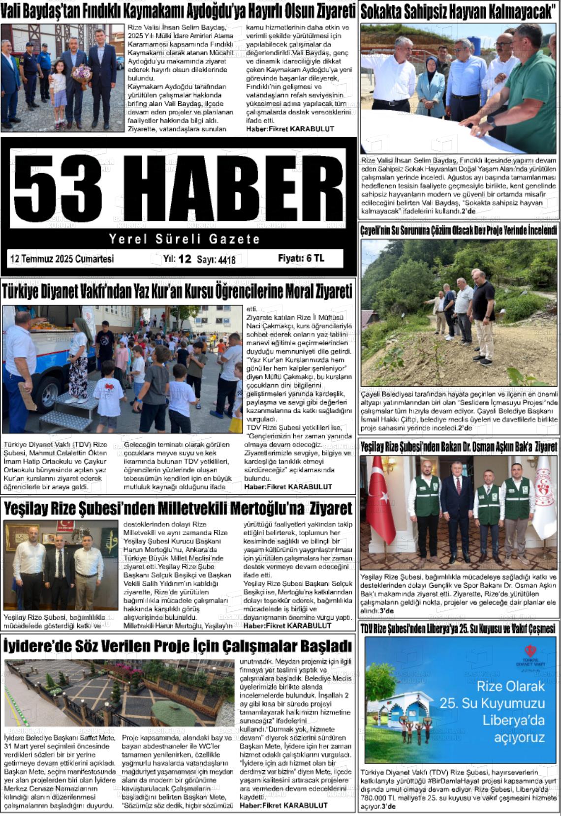 Rİze Yerel Gazeteleri 23 Ekim 2025, Perşembe Günü Manşeti