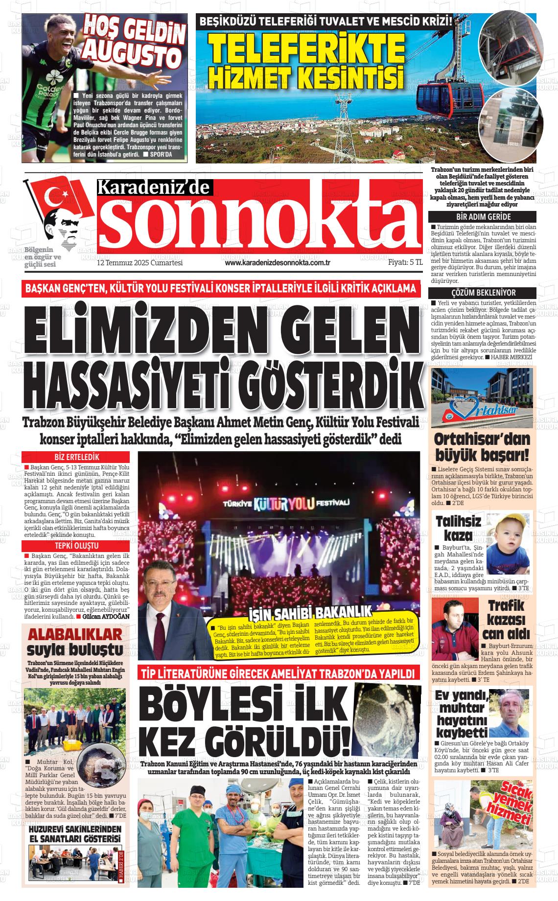 Trabzon Yerel Gazeteleri 23 Ekim 2025, Perşembe Günü Manşeti