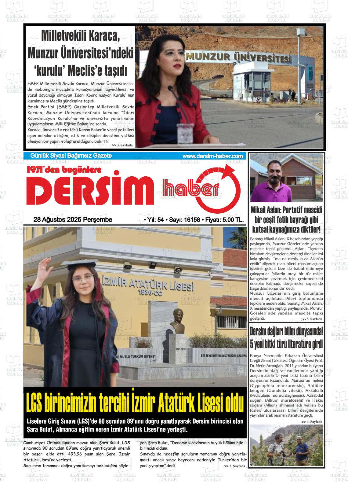 Tuncelİ Yerel Gazeteleri 23 Ekim 2025, Perşembe Günü Manşeti